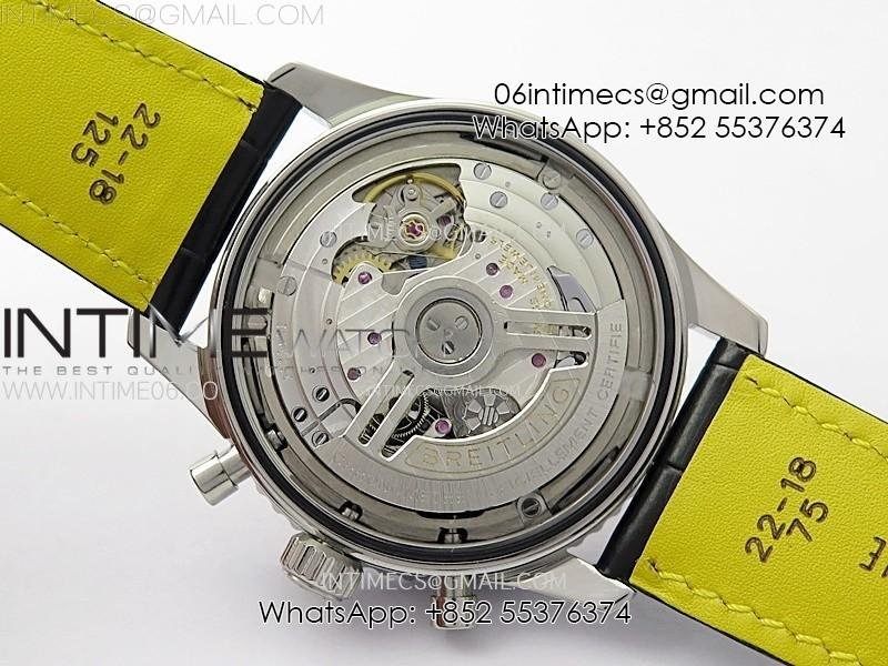 Movement: Base Movement: Asian 7750 automatic chronograph movement at 28800vph; Decoration: Platinum plated movement plate and rotor which are made according to the genuine movement, the best looking Breitling Calibre Movement Clone at the moment.