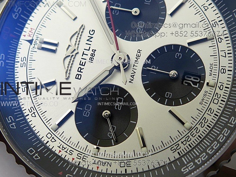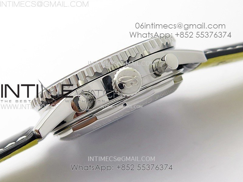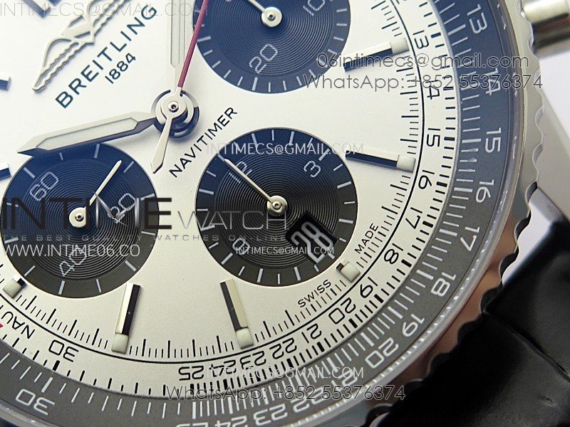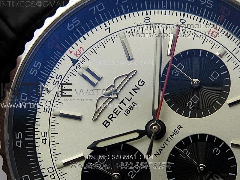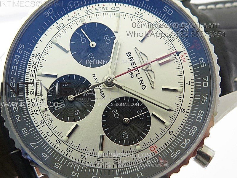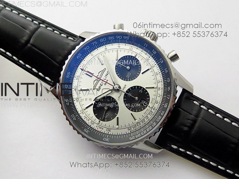 Navitimer B01 43mm SS BLSF 1:1 Best Edition Silver Dial Black Subdials On Black Leather Strap A7750
