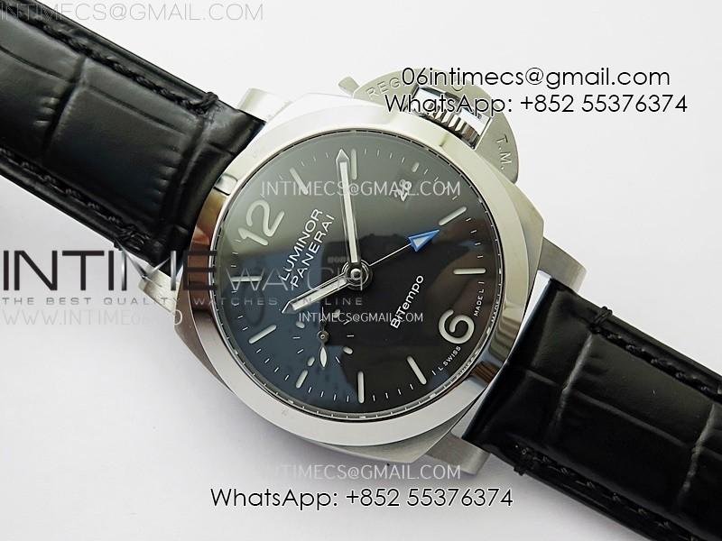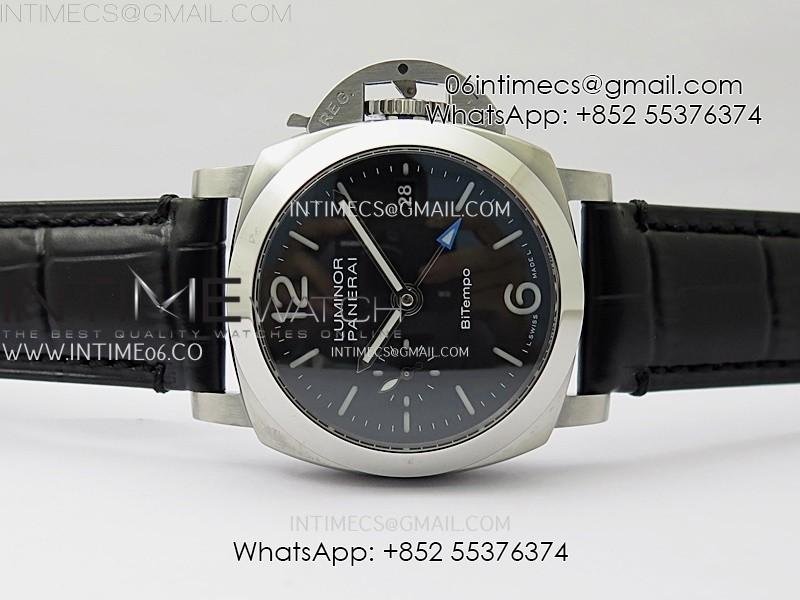 PAM1365 Z GMT SS VSF 1:1 Best Edition Black Dial on Black Leather Strap Asian P900