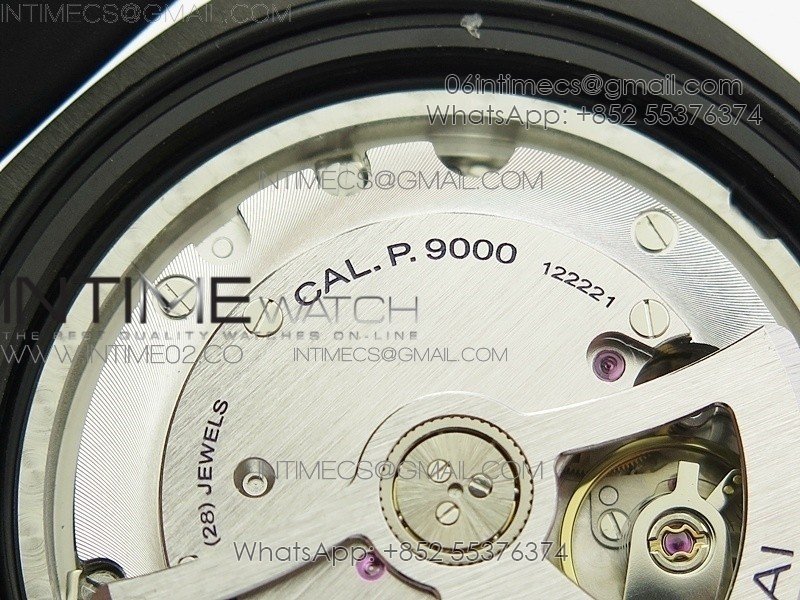 Movement: Updated Custom designed Asian automatic movement to match the genuine Panerai P.9000 movement at 28800vph, same balance wheel position as genuine P.9000 movement.
