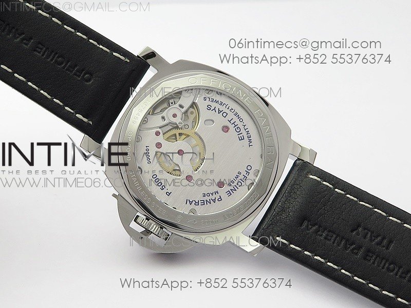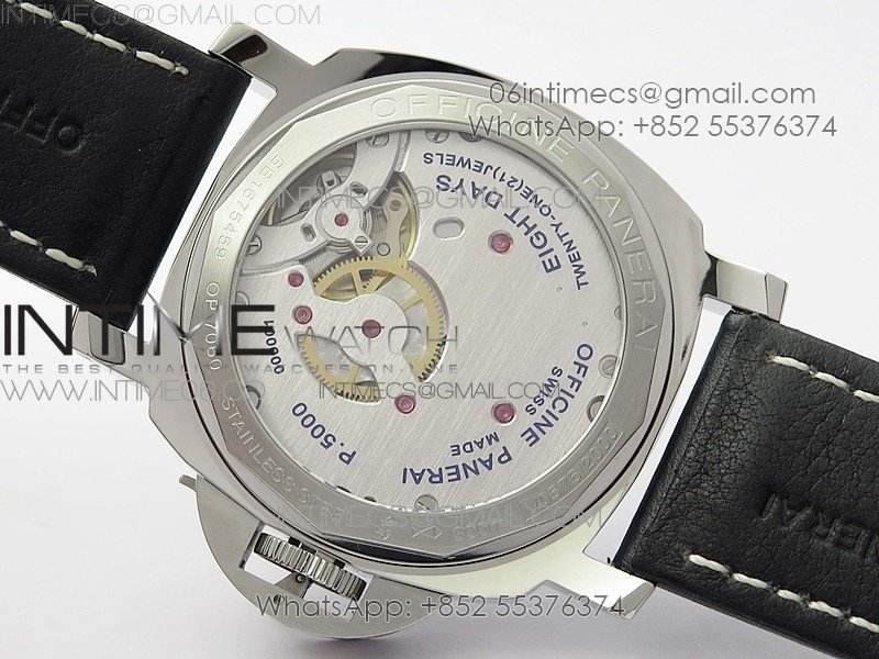 Movement: Custom designed Asian hmovement to match the genuine Panerai P5000 movement, hand-winding, double barrel, 120 hours+ power reserve, 21600vph