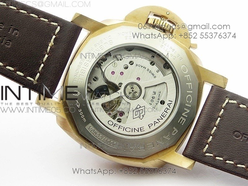 Movement Updated Custom designed Asian automatic movement to match the genuine Panerai P.9000 movement at 28800vph, same balance wheel position as the genuine P.9000 movement.(The independently adjustable hour hand which allows you to turn it clockwise or anti-clockwise to adjust hours and date easily, same adjusting as the genuine movement.)