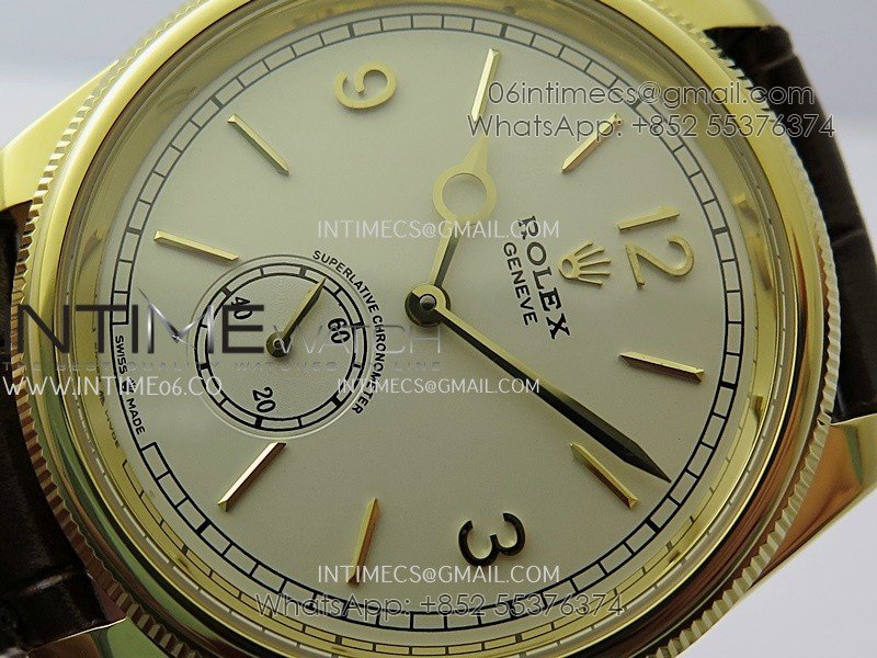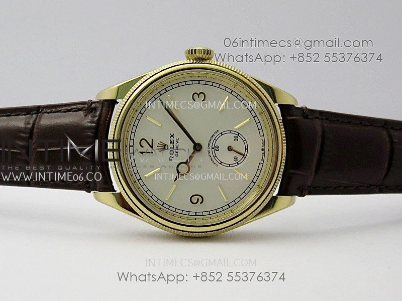 Perpetual 1908 52508 39mm YG 8+F White Dial On Brown Leather Strap A7140