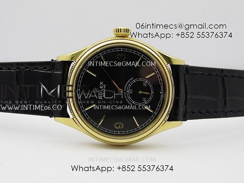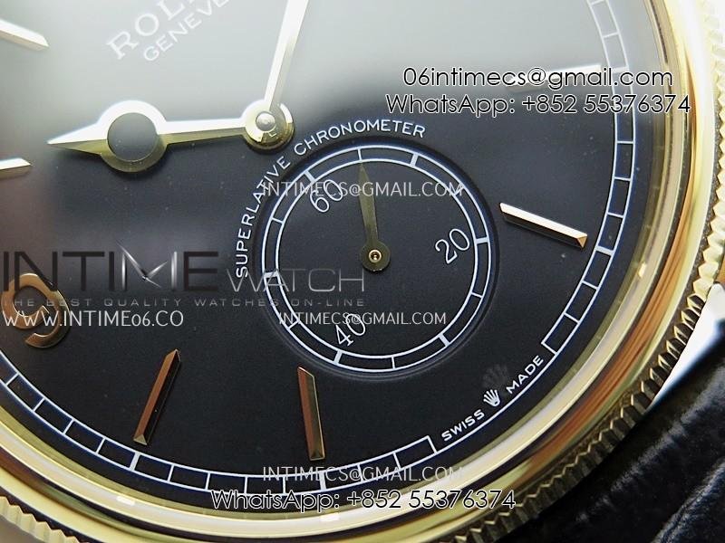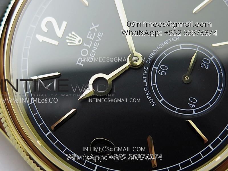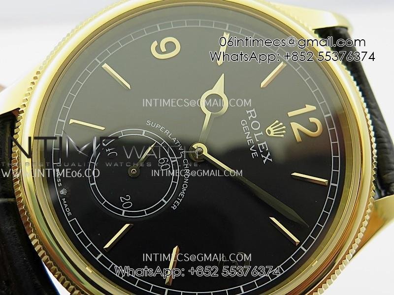 Perpetual 1908 52509 39mm YG ESF Black Dial On Black Leather Strap A7140