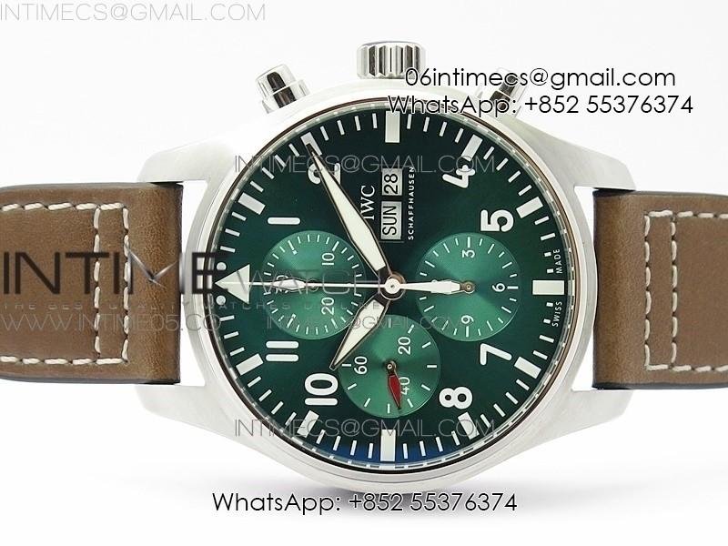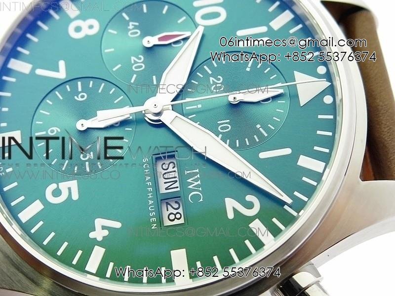 Pilot Chrono Spitfire IW377726 SS ZF 1:1 Best Edition Green Dial on Brown Leather Strap A7750