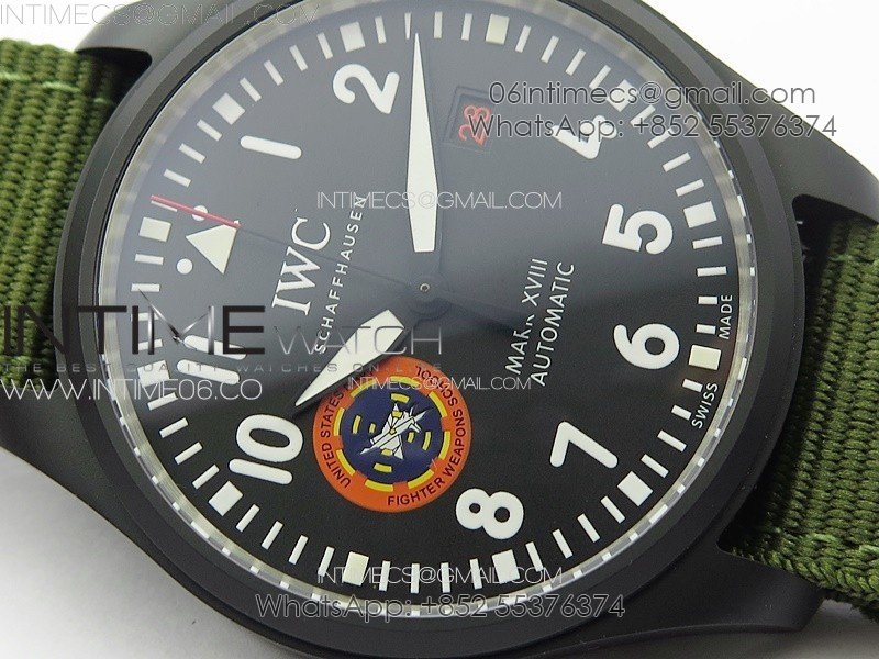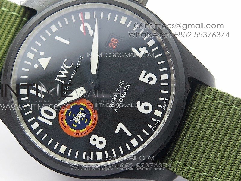 Pilot Mark XVIII TOPGUN SFTI Ceramic M+ 1:1 Best Edition Black Dial on Green Nylon Strap A2892