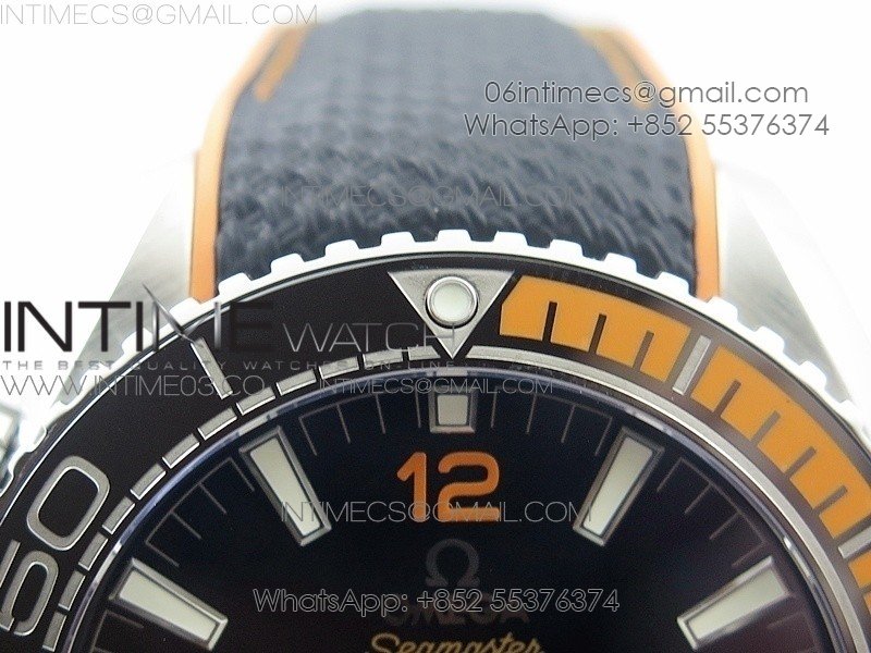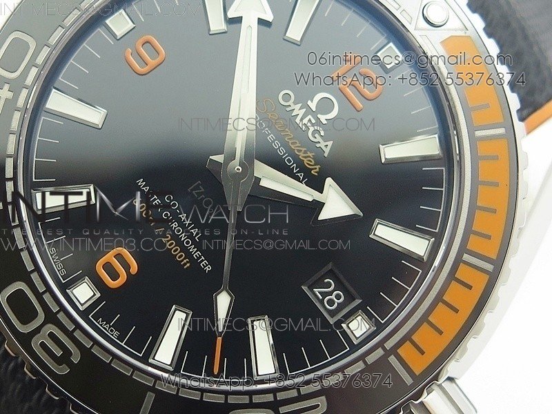 Planet Ocean 43.5mm SS VSF 1:1 Best Edition Black/Orange Bezel Black Dial on Black Nylon Strap A8900 Super Clone