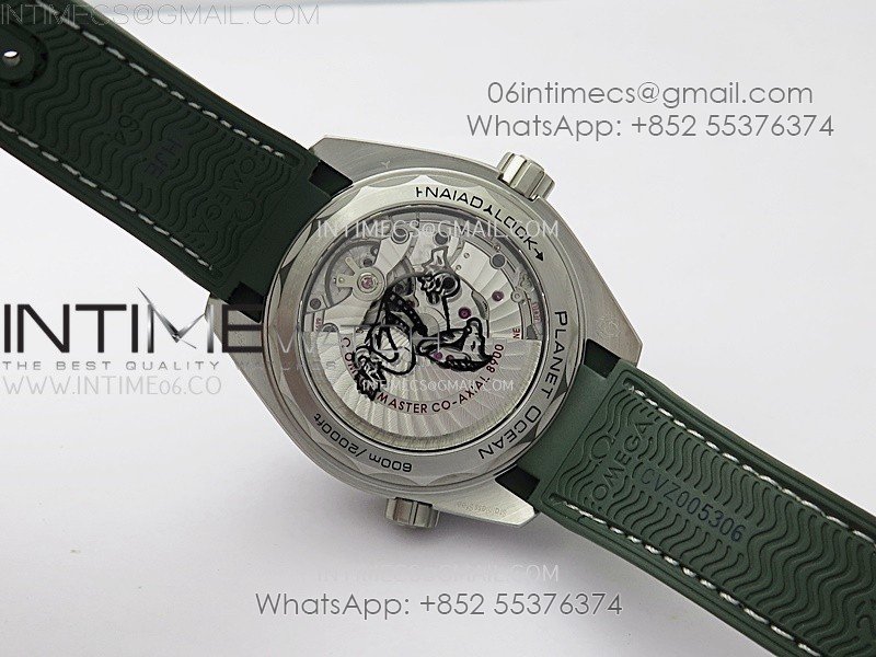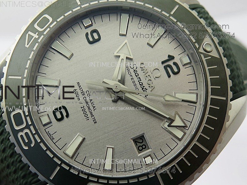 Planet Ocean 600M 43.5mm Green Ceramic Bezel SS VSF 1:1 Best Edition Silver Dial on Green Rubber Strap A8900
