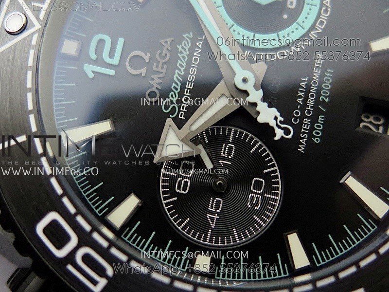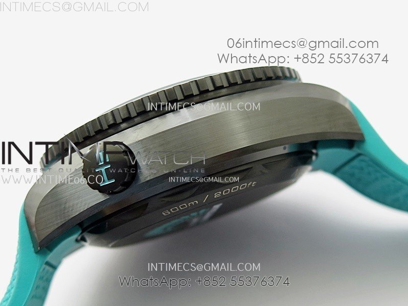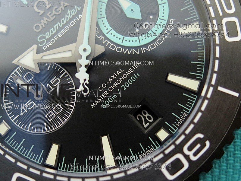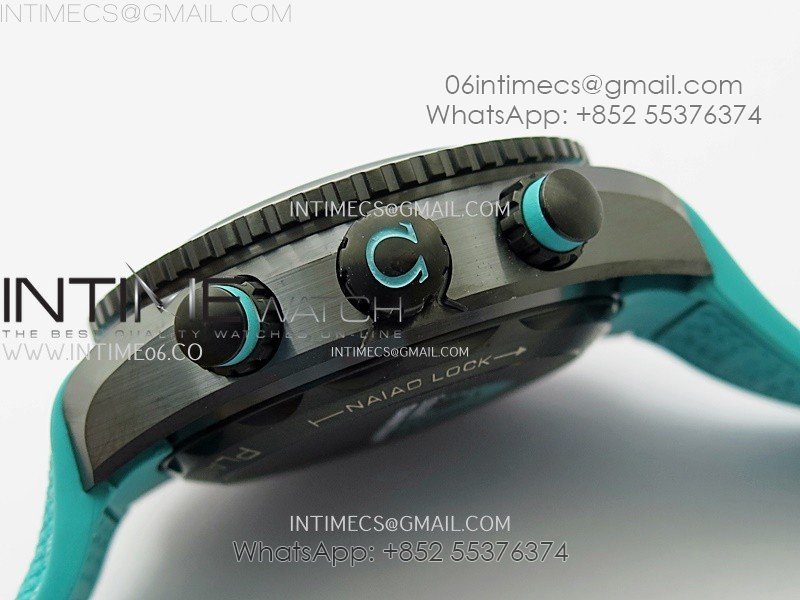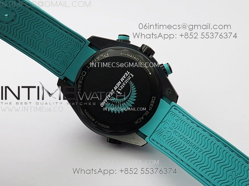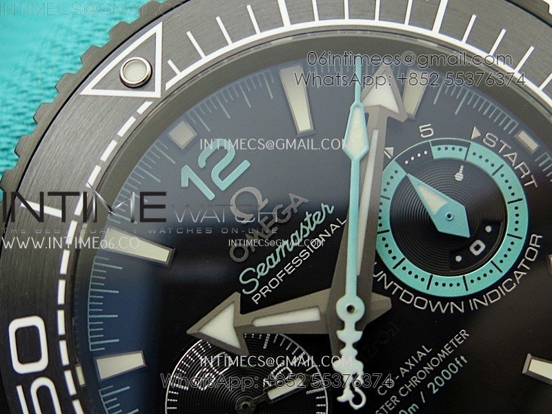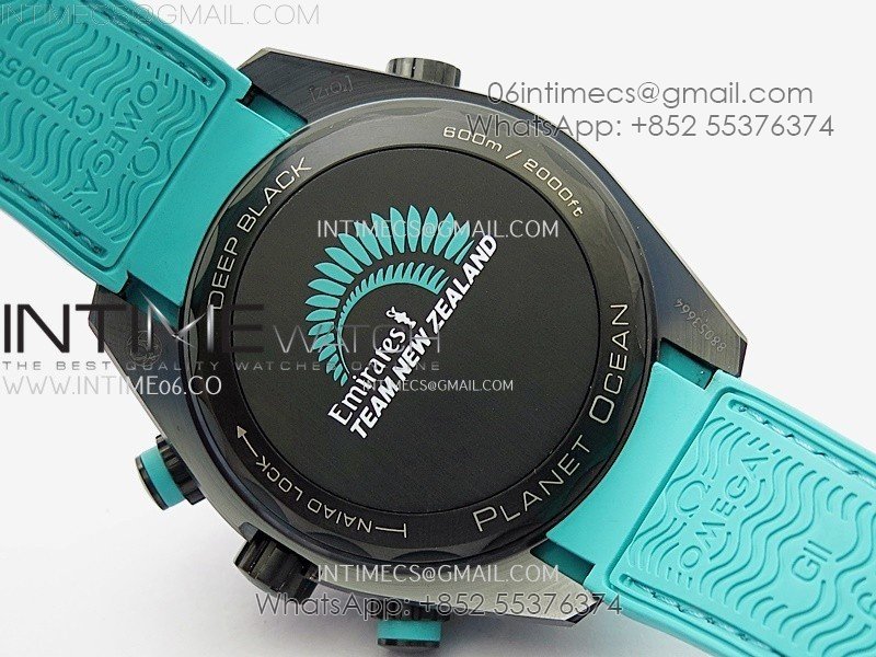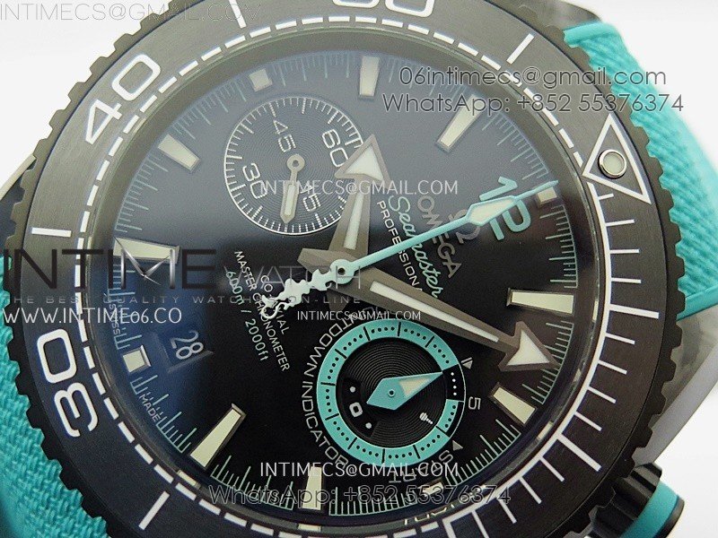 Planet Ocean Master Chrono Deep Black Ceramic SCF 1:1 Best Edition Black Dial on Light Blue Rubber Strap A9900