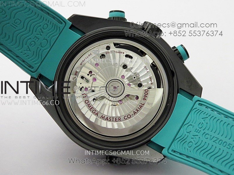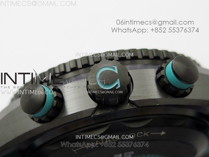 Movement Asian 7750 automatic chronograph movement decorate to Omega 9900 movement with the black balance wheel, 2 hands on 3 clock sub dial can work as per genuine.