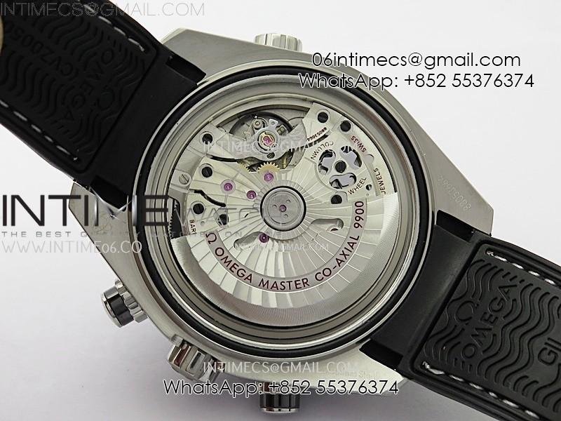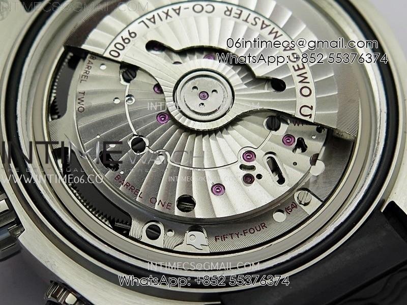 Movement Asian 7750 automatic chronograph movement decorate to Omega 9900 movement with the black balance wheel, chronagraph sub dial can work as per genuine.