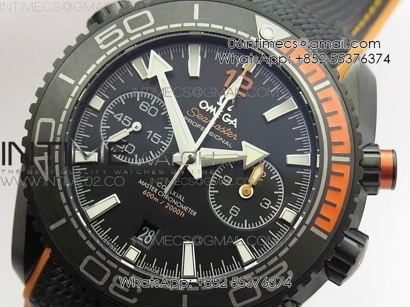 Planet Ocean Master Chronometer Chrono DLC OM 1:1 Best Edition Black Dial on Nylon Strap A9900