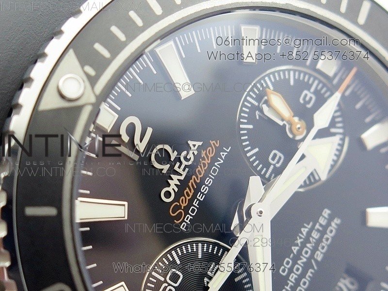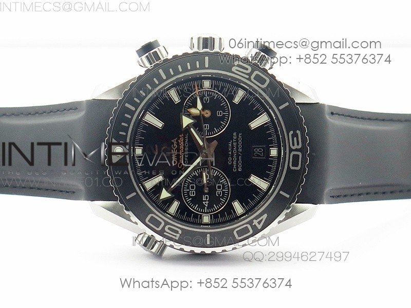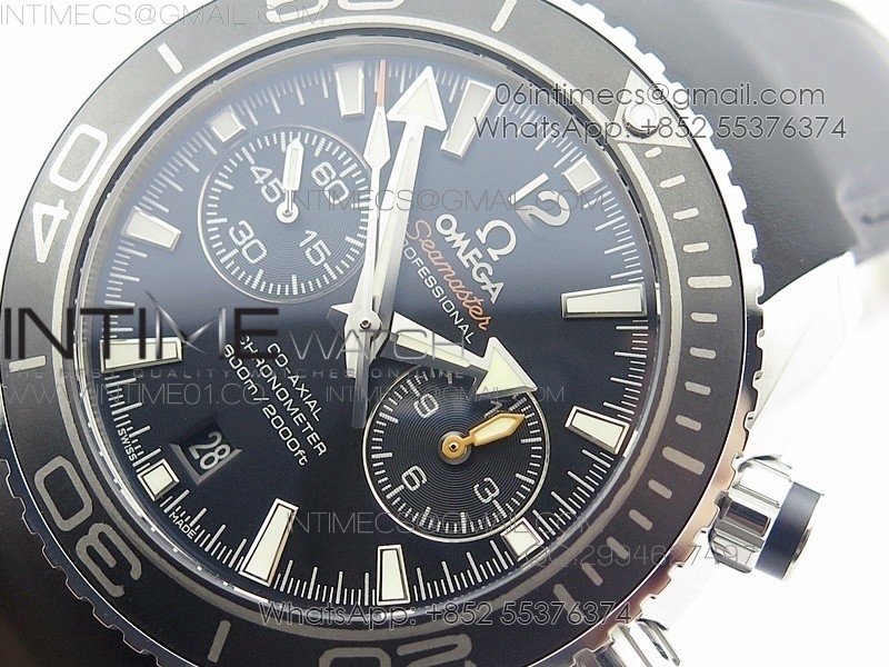 Planet Ocean Master Chronometer Chrono SS OM 1:1 Best Edition Black Dial on Black Orange Strap A9300