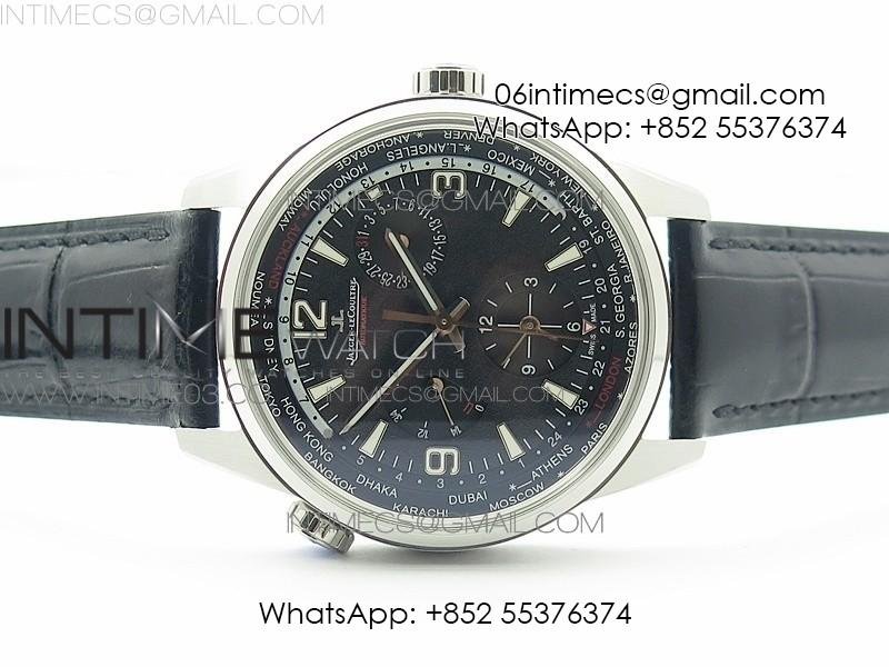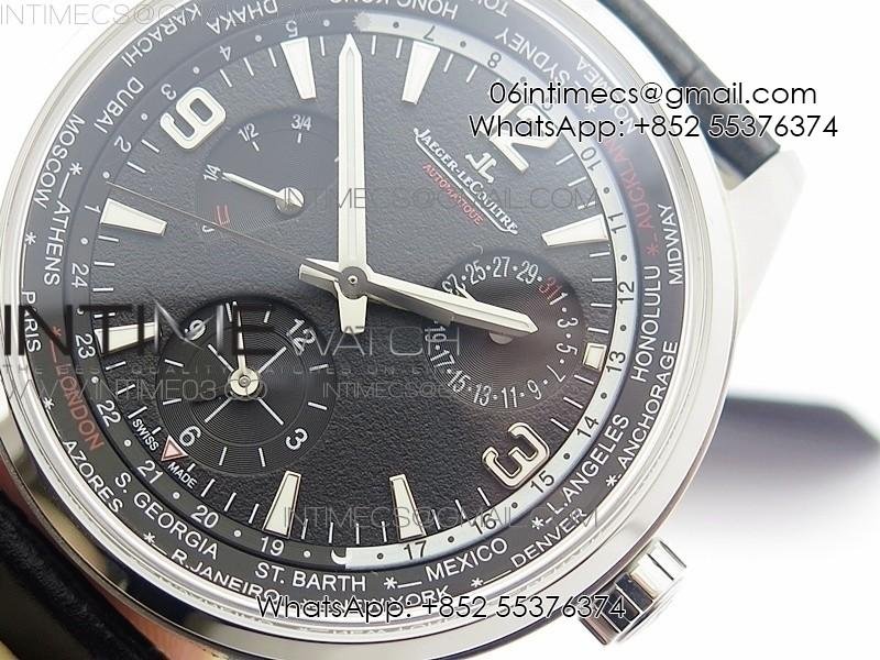 Polaris Geographic TWA SS Black Textured Dial on Black Leather Strap A936