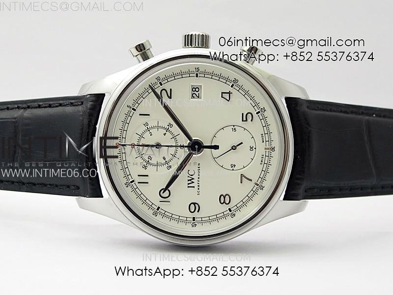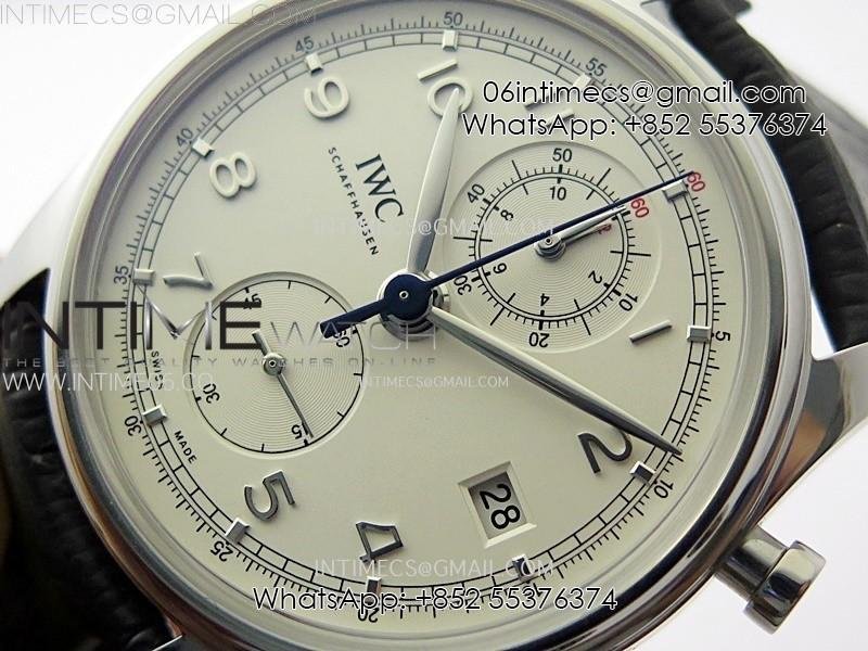 Portugieser Chrono Classic 42 IW390403 AZF 1:1 Best Edition White Dial Silver Markers on Black Leather Strap A7750