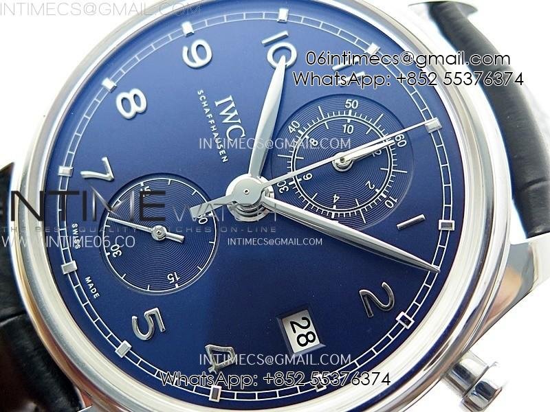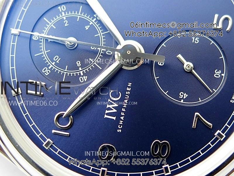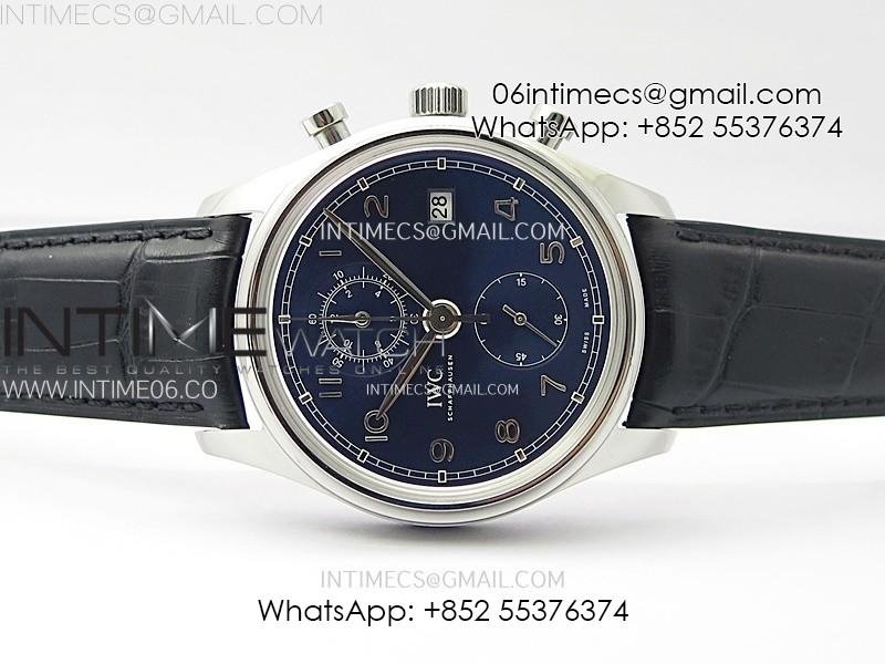 Portugieser Chrono Classic 42 IW390406 AZF 1:1 Best Edition Blue Dial Blue Hand on Black Leather Strap A7750