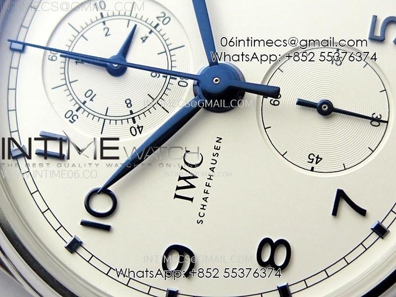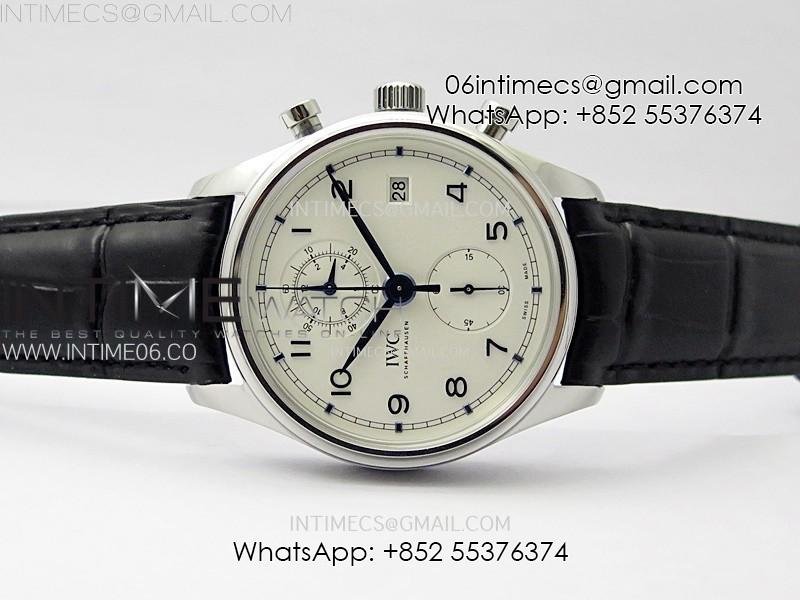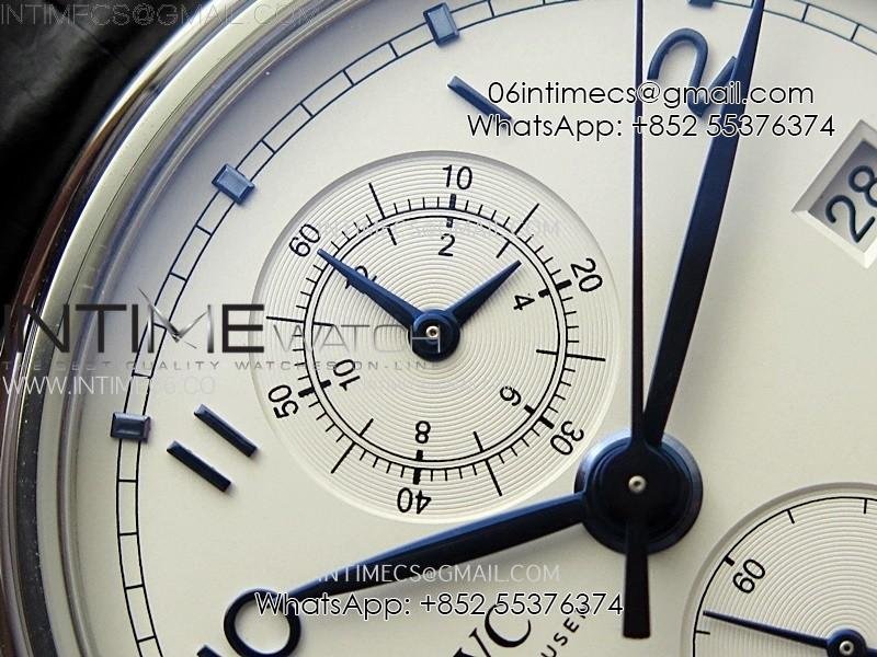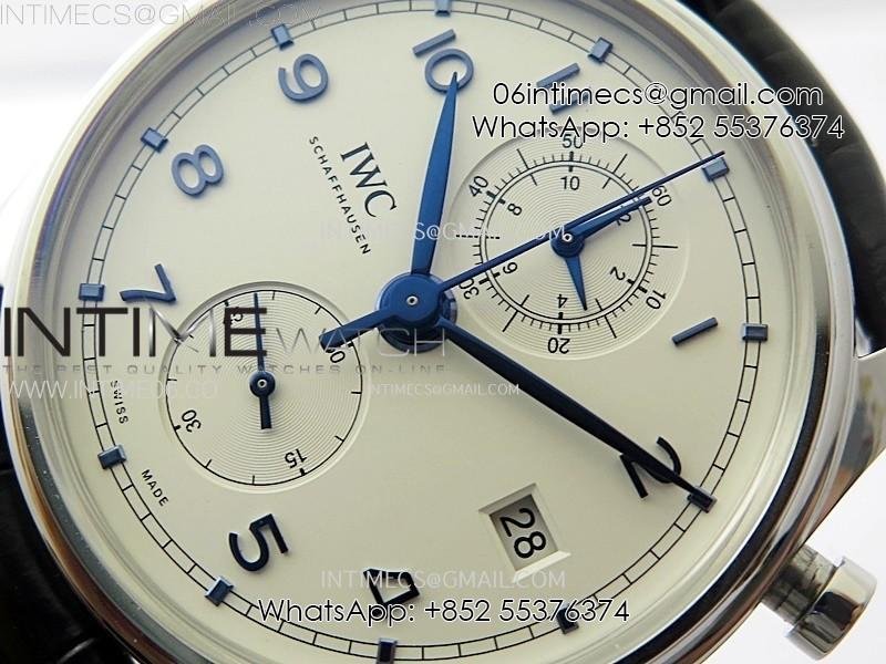 Portugieser Chrono Classic 42 IW390406 AZF 1:1 Best Edition White Dial Blue Markers on Black Leather Strap A7750