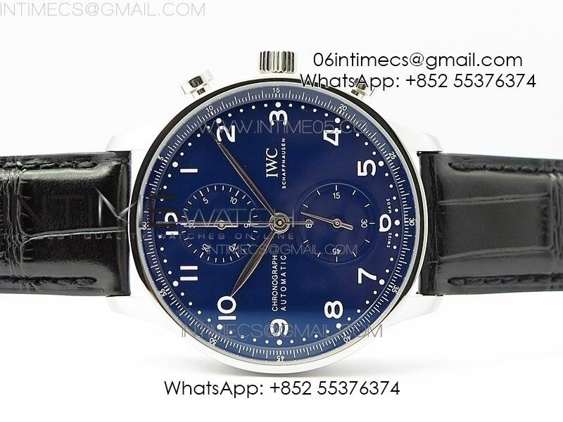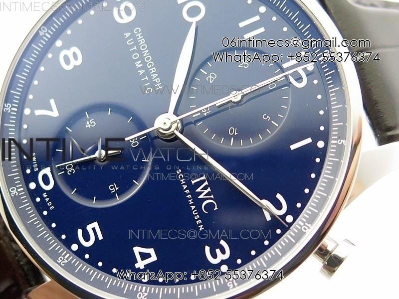 Portugieser Chronograph Edition 150 Years IW371601 ZF 1:1 Best Edition Blue Dial on Black Leather Strap A7750 (Slim Movement)