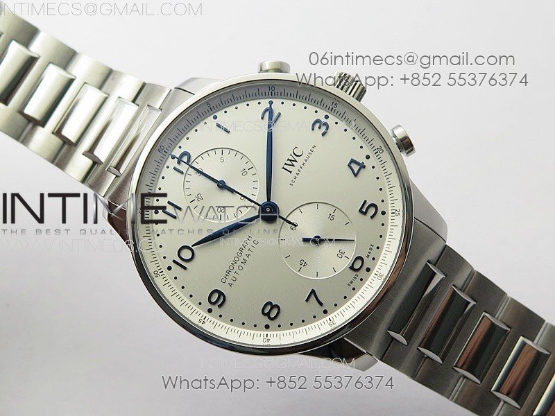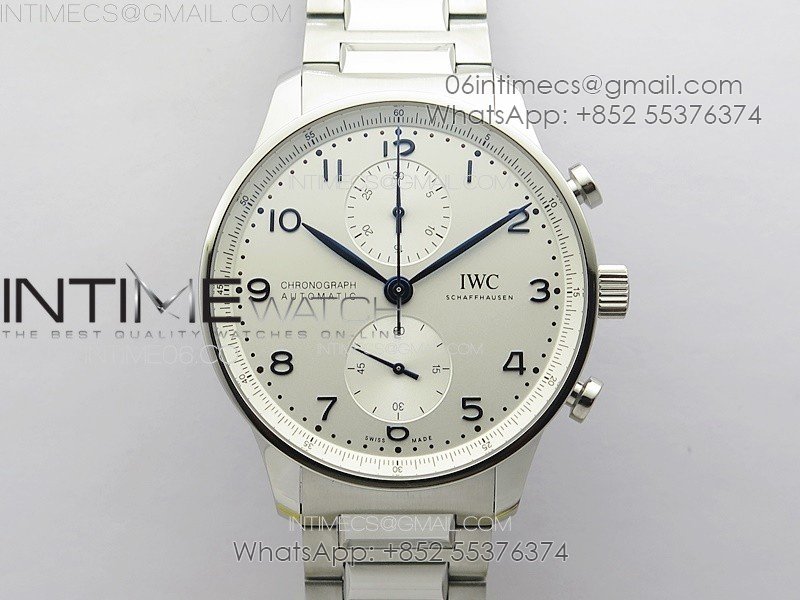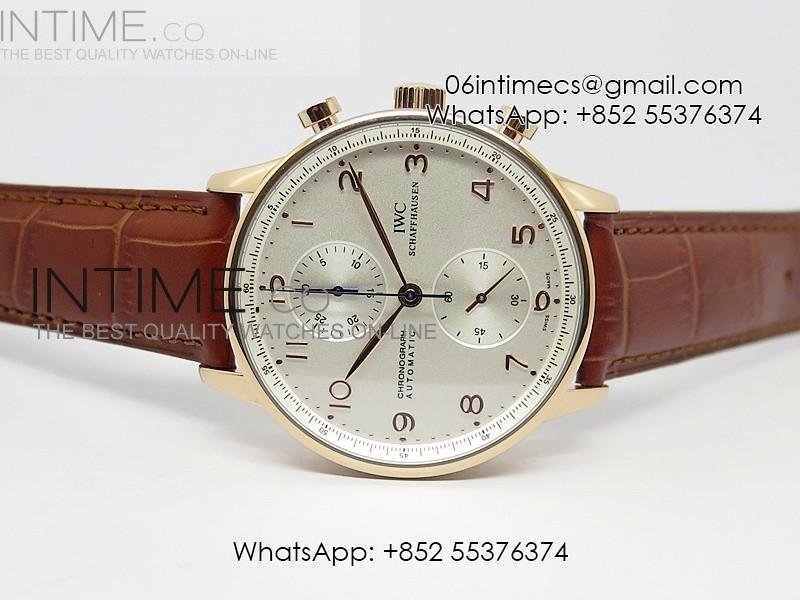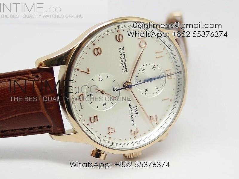 Portuguese 40mm Chrono RG White Dial on Leather Strap A7750