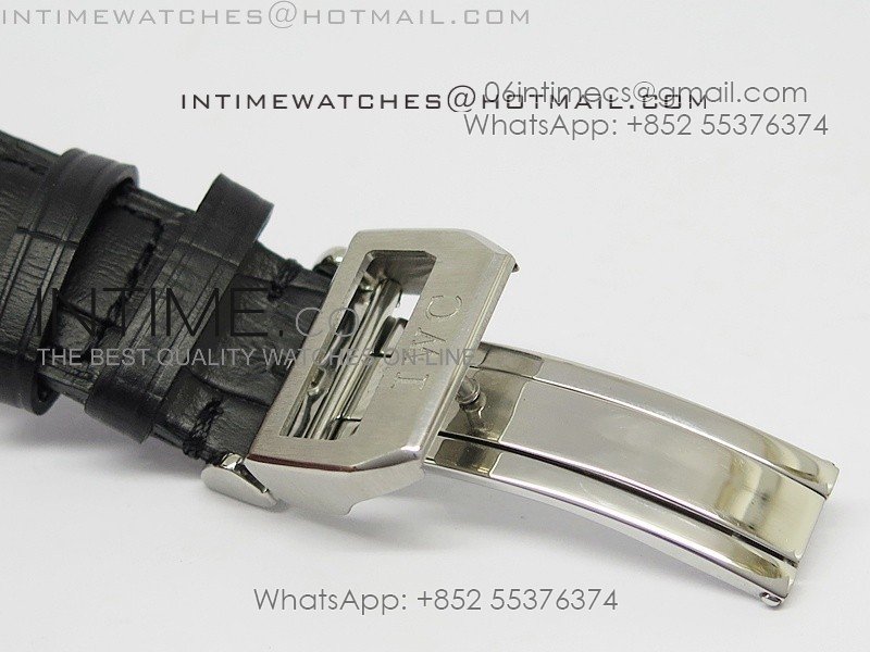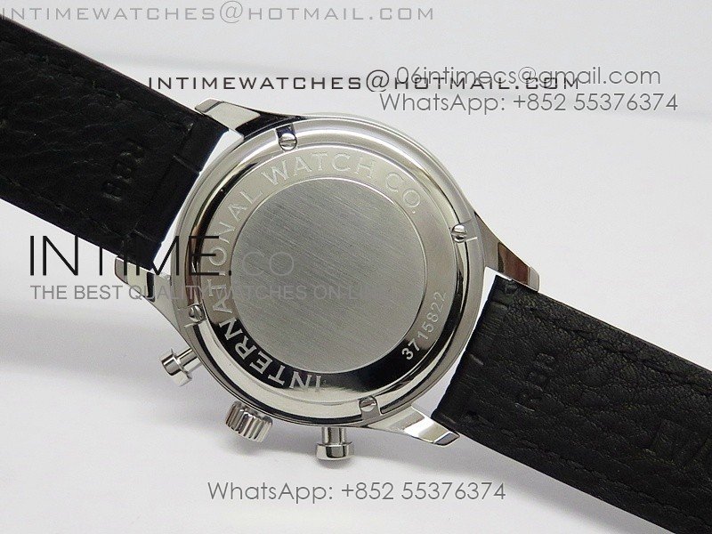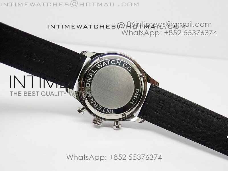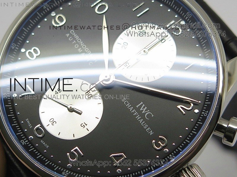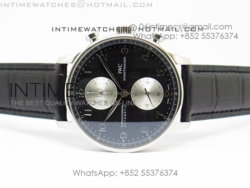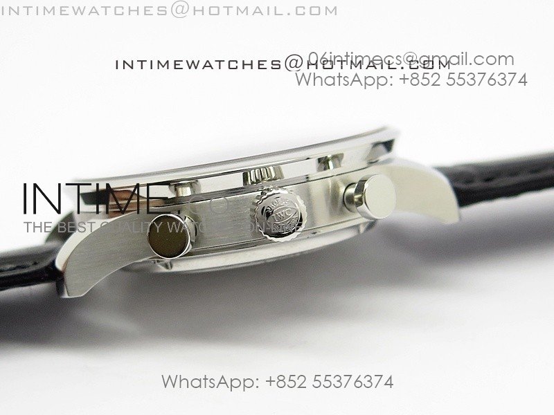 Portuguese 40mm Chrono SS Black Dial Sliver subdial on Leather Strap A7750