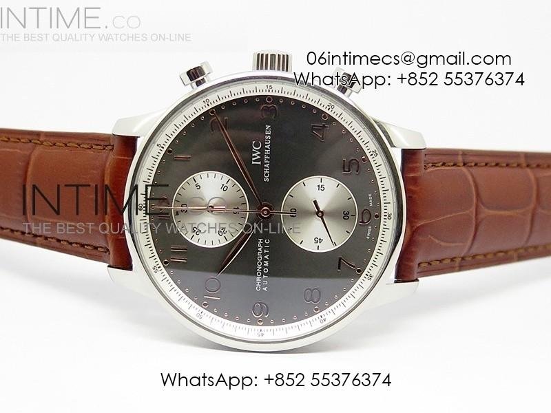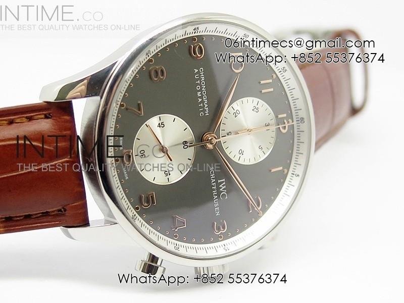 Portuguese 40mm Chrono SS Gray Dial Sliver subdial on Leather Strap A7750
