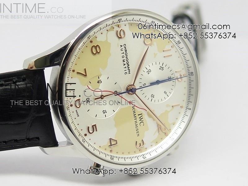 Portuguese 40mm Chrono SS Map Dial on Leather Strap A7750