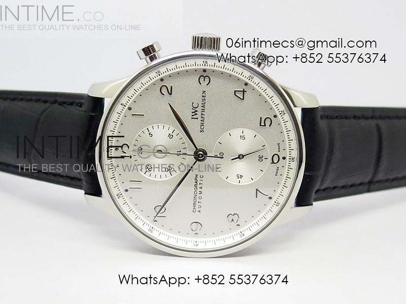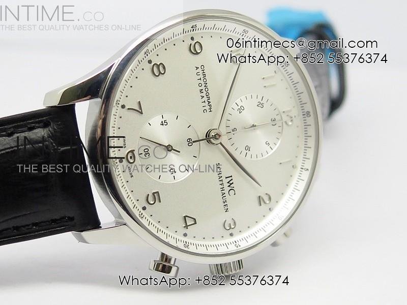 Portuguese 40mm Chrono SS White Dial Sliver Number on Leather Strap A7750