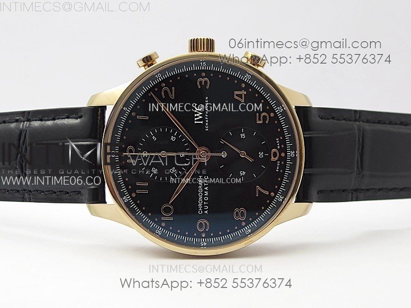 Portuguese Chrono IW371609 RG ZF 1:1 Best Edition Black Dial on Black Leather Strap A69355