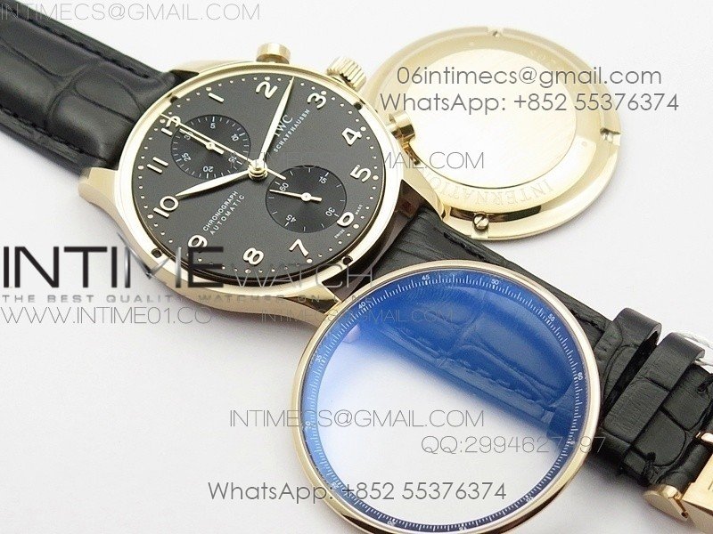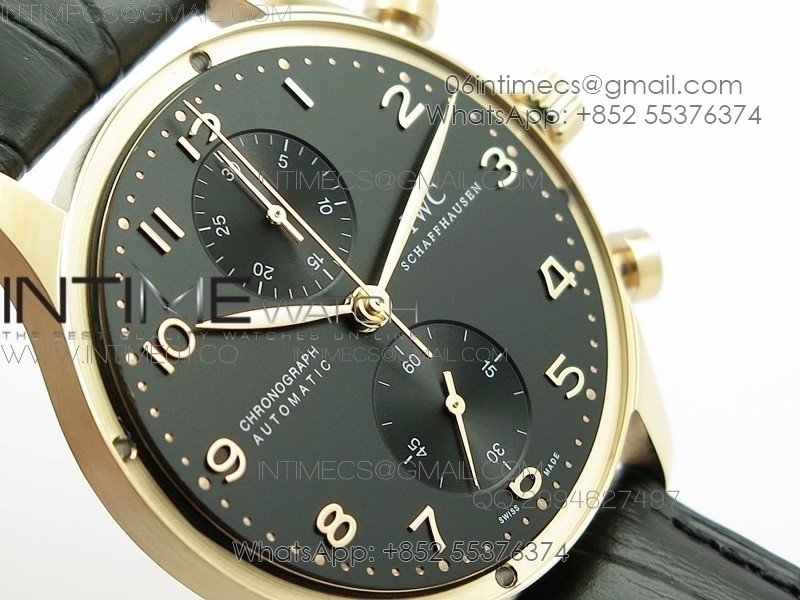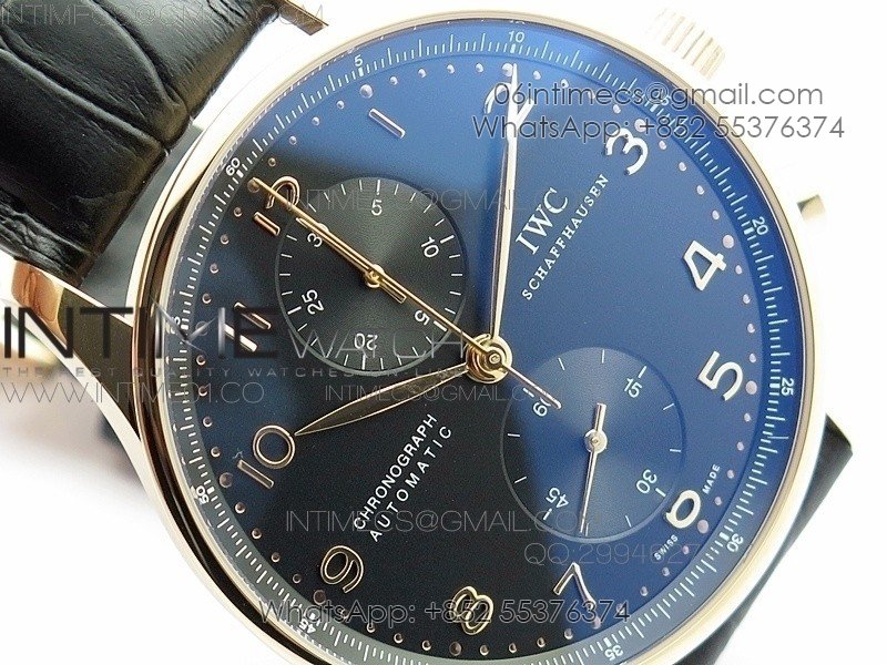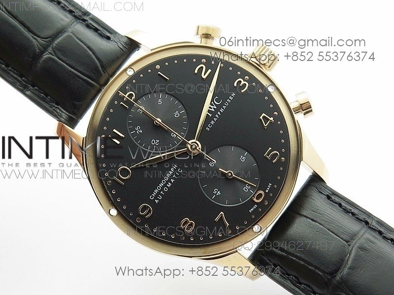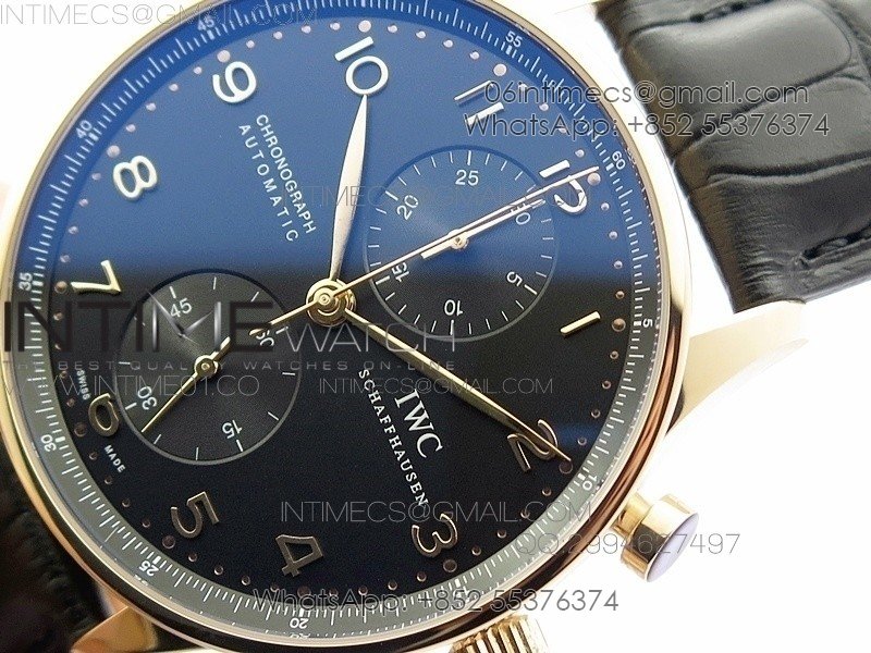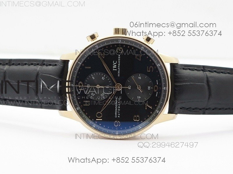 Portuguese IW371415 ZF V3 1:1 Best Edition RG Black dial on Black Leather Strap A79350 (Slim Movement)