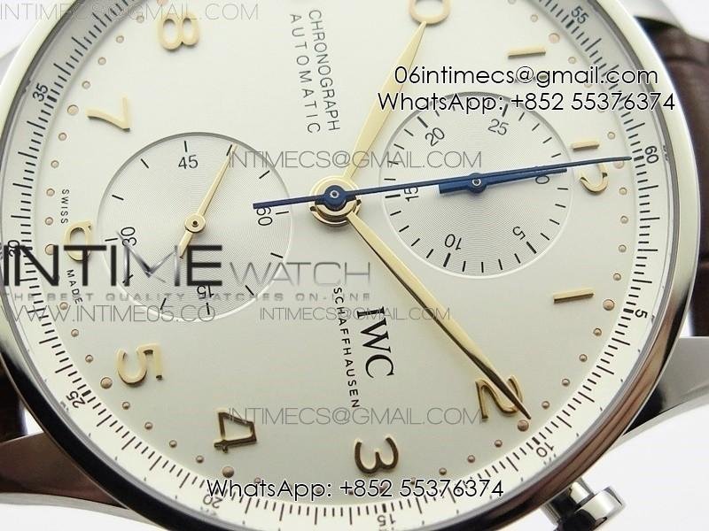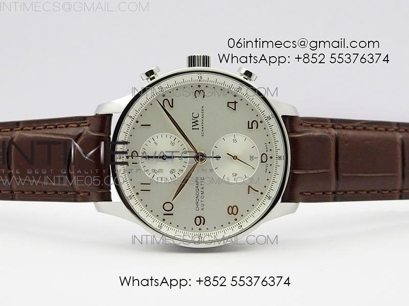 Portuguese IW371604 ZF V3 1:1 Best Edition SS White Dial RG Markers on Brown Leather Strap A96355