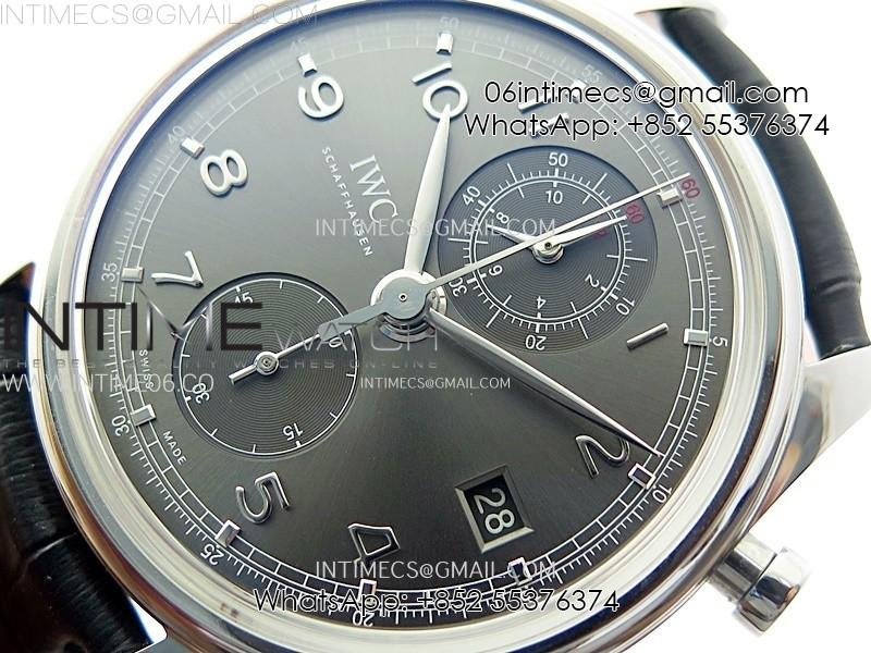 Portuguese IW390404 SS AZF 1:1 Best Edition Gray Dial A7750 On Black Leather Strap
