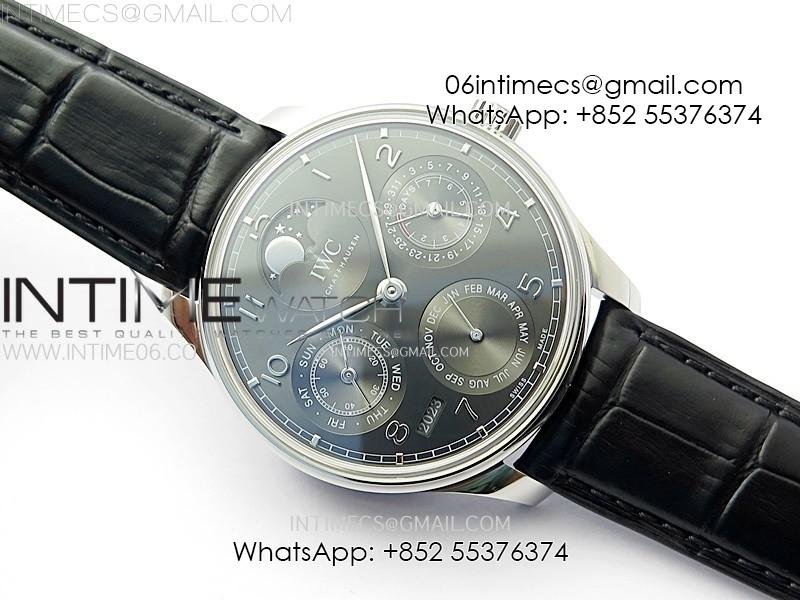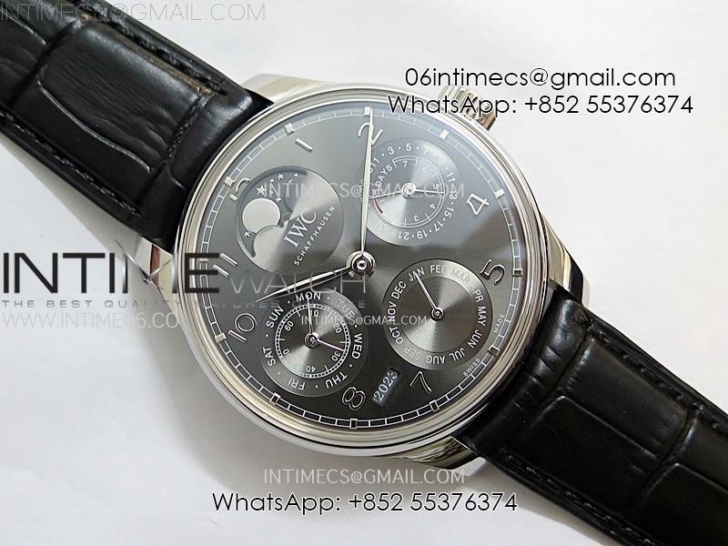 Portuguese IW503301 Real PR SS APSF 1:1 Best Edition Gray Dial On Black Leather Strap A52010