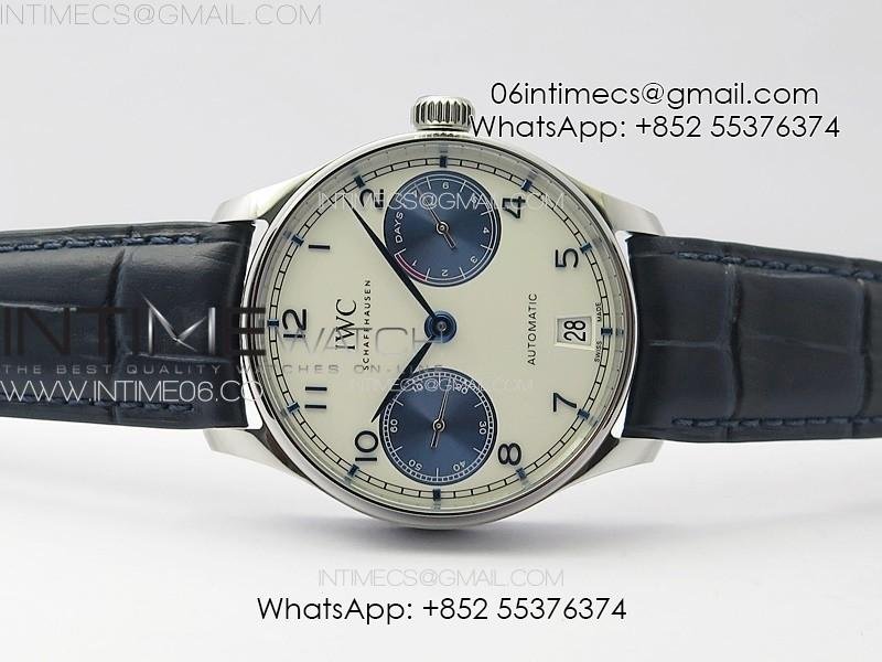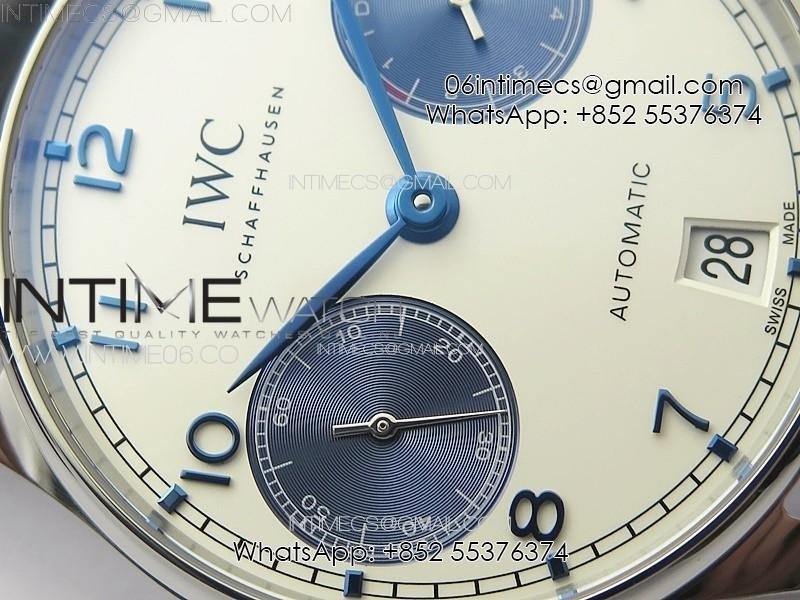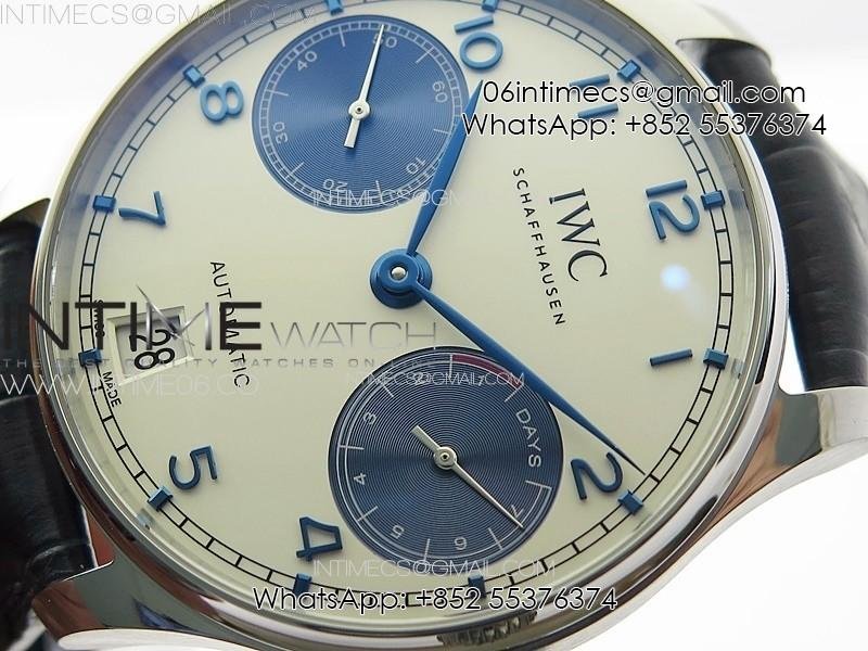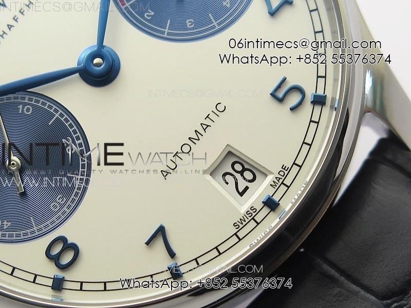 Portuguese Real PR IW500715 SS AZF 1:1 Best Edition White Dial Blue Subdial on Blue Leather Strap A52010