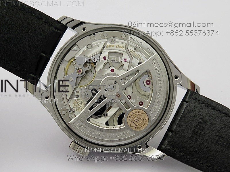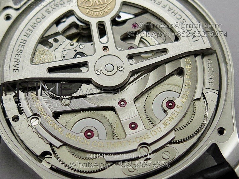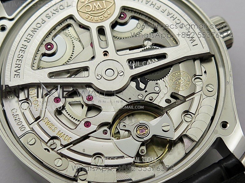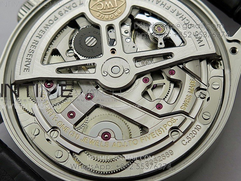 Movement   New IWC 52010 Movement Clone. Base Movement: Asian 23J automatic movement; Decoration: Platinum plated movement plate and rotor which are made according to the genuine movement, the best looking IWC 52010 Movement Clone at the moment.