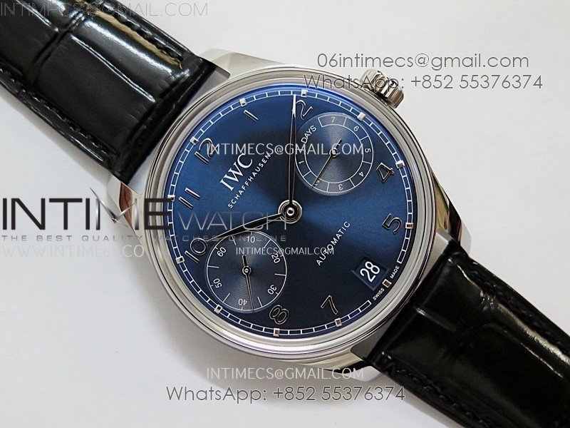 Portuguese Real PR IW501704 SS APSF 1:1 Best Edition Blue Dial On Black Leather Strap A52010