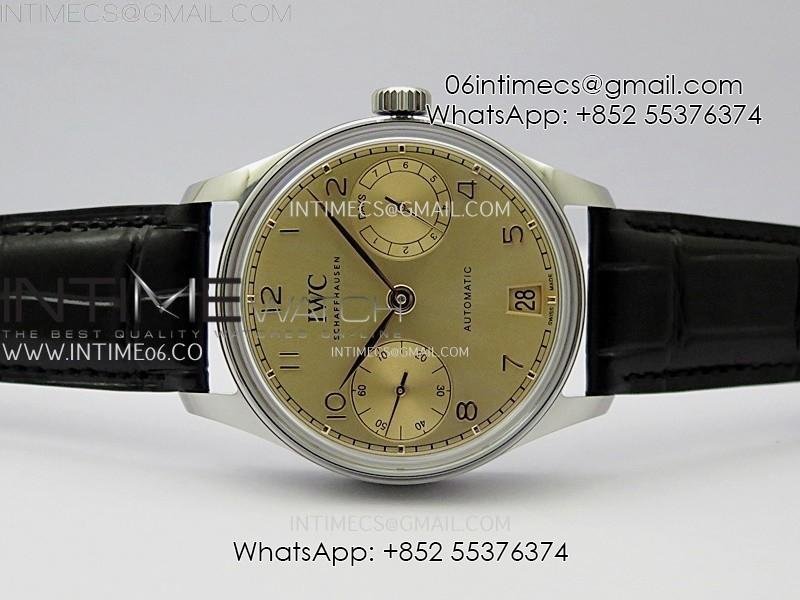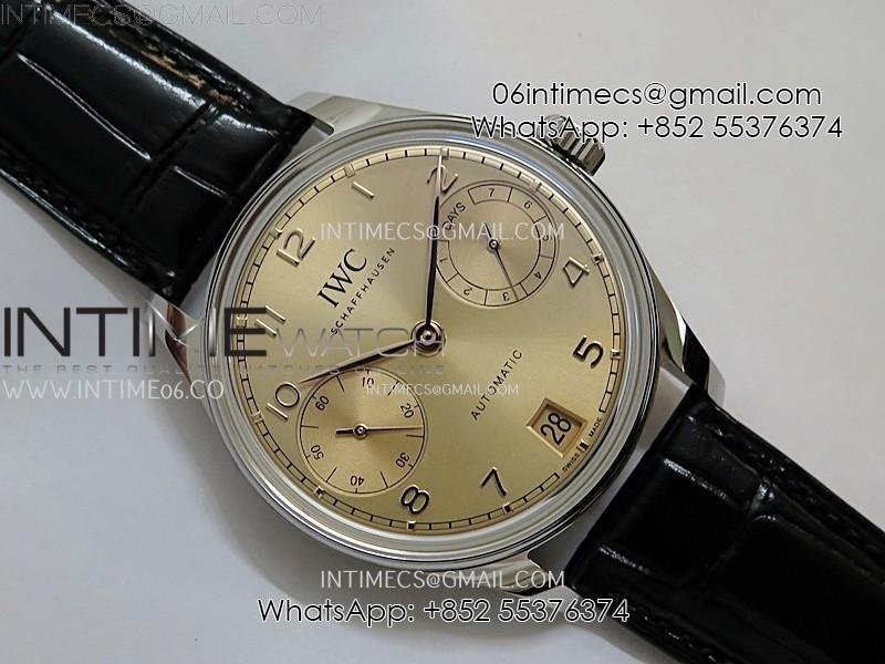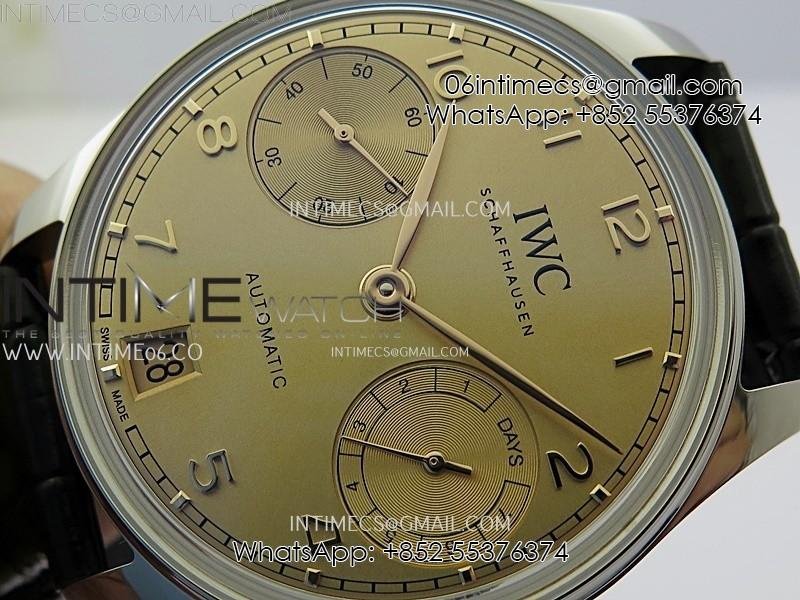 Portuguese Real PR IW501705 SS APSF 1:1 Best Edition Gold Dial On Black Leather Strap A52010