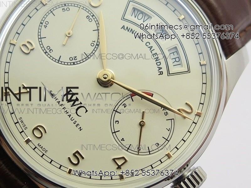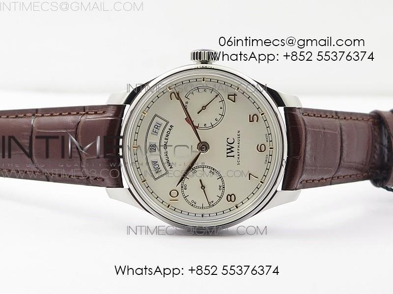 Portuguese Real PR Real Annual Calendar IW503501 AZF 1:1 Best Edition White Dial on Brown Leather Strap A52850
