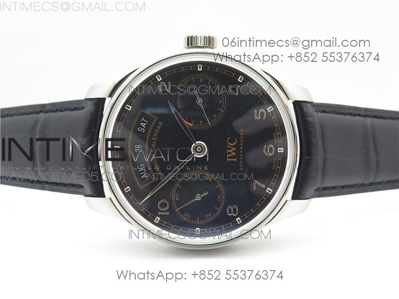PORTUGUESE REAL PR REAL ANNUAL CALENDAR IW503502 ZF 1:1 BEST EDITION BLACK DIAL ON BLACK LEATHER STRAP A52010