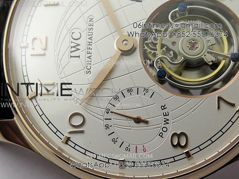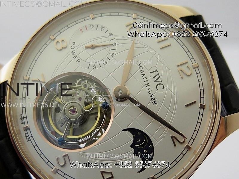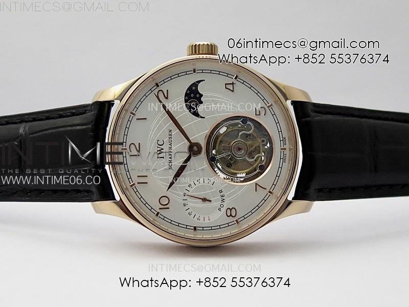 Portuguese Tourbillon Power Reserve RG AXF White Dial RG Numbers moonphase on Black Leather Strap