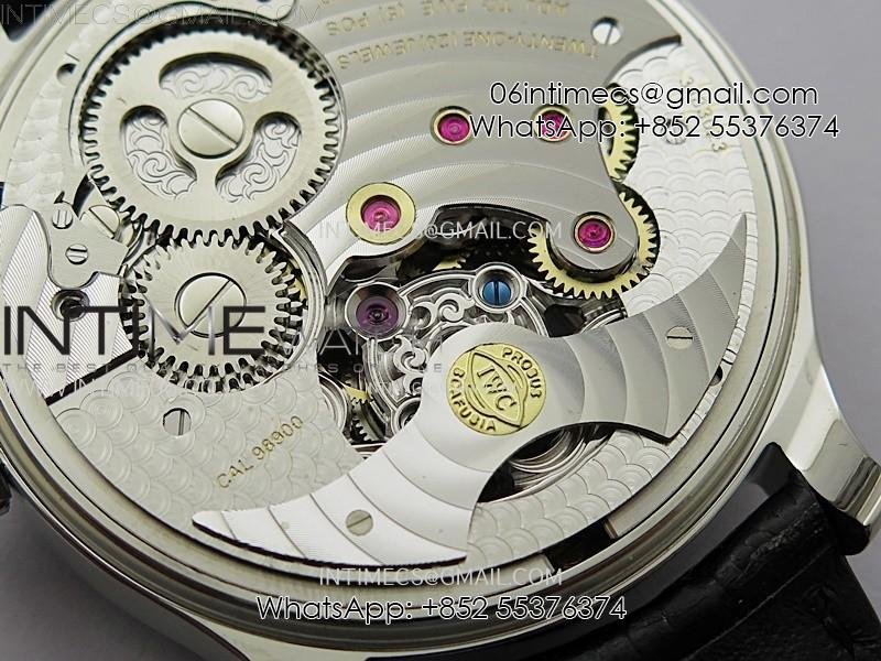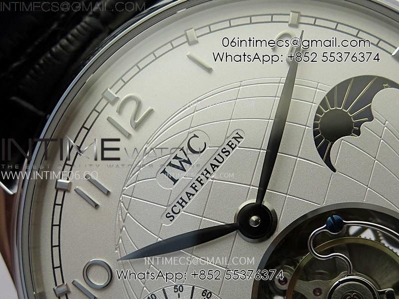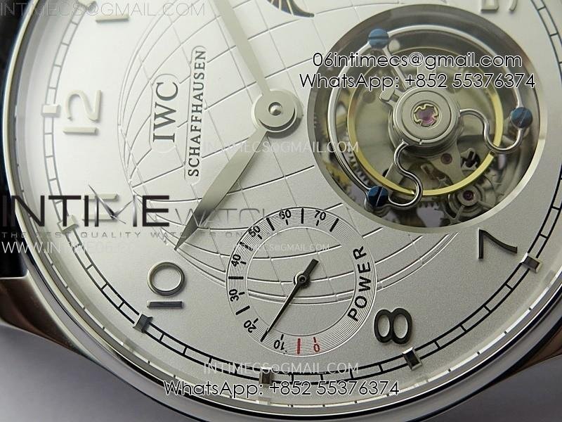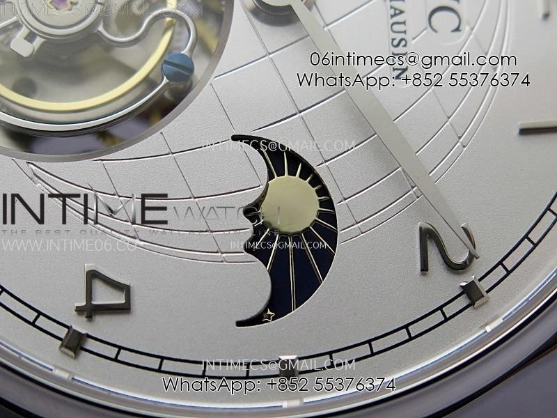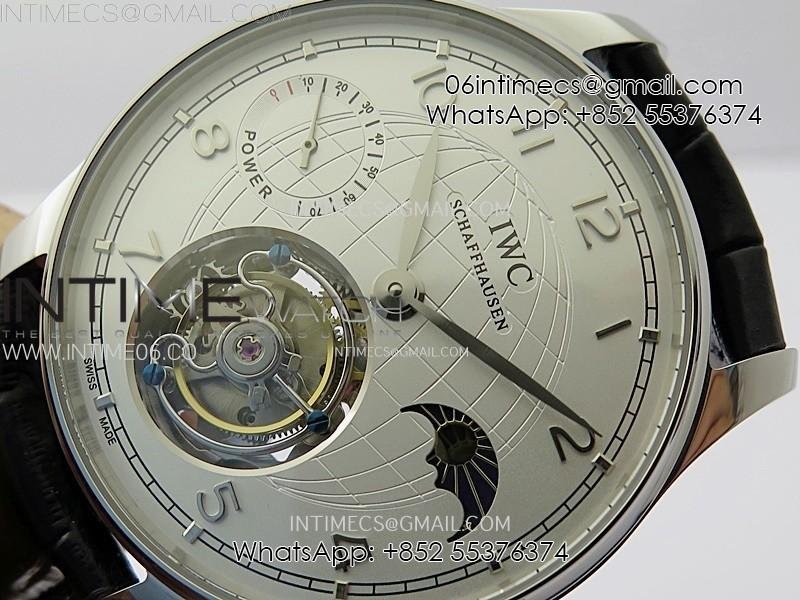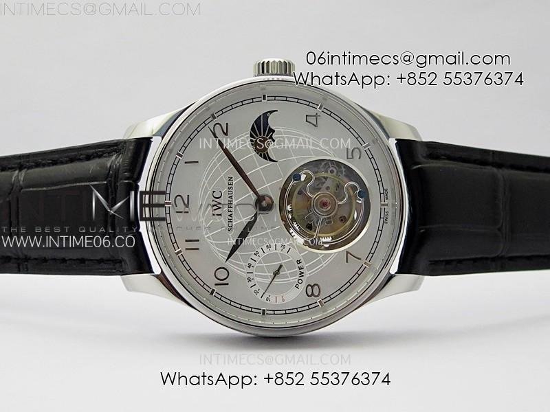 Portuguese Tourbillon Power Reserve SS AXF White Dial Sliver Numbers moonphase on Black Leather Strap