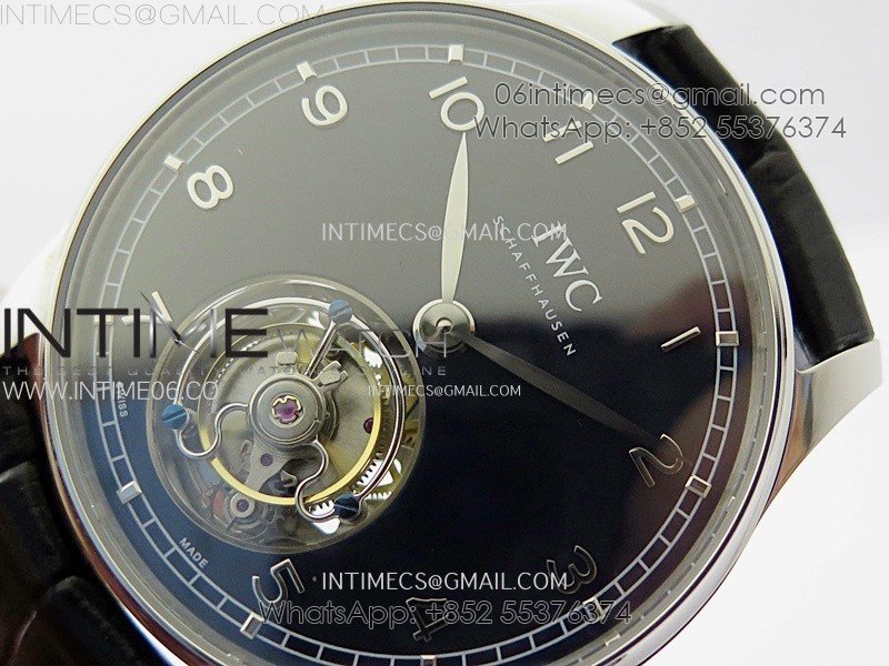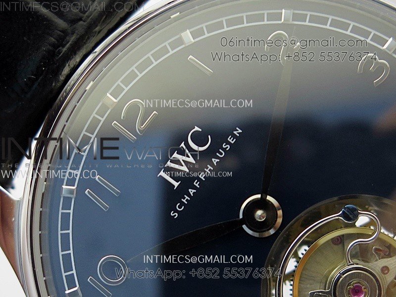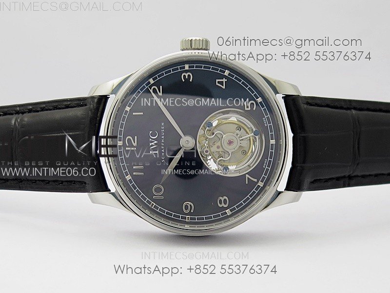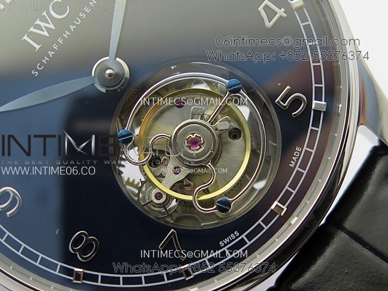 Portuguese Tourbillon SS AXF Blue Dial Sliver Numbers on Black Leather Strap