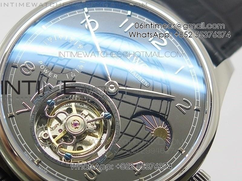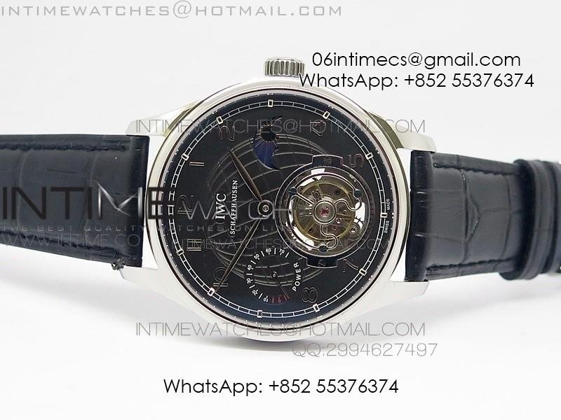 Portuguese Tourbillon SS AXF Gray Dial Sliver Numbers moonphase on Black Leather Strap