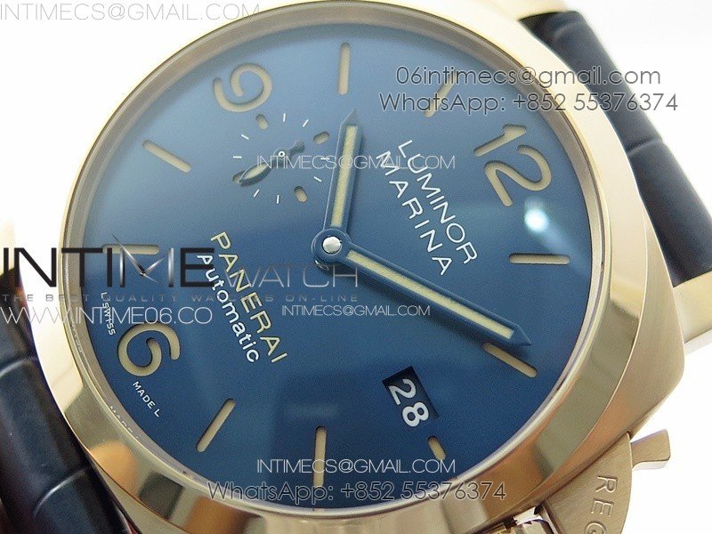 Pre Order PAM1114 RG VSF 1:1 Best Edition Blue Dial on Blue Leather Strap P.9010 Super Clone