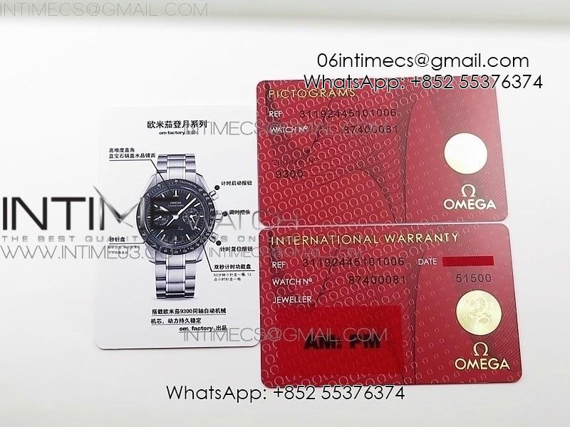 Movement Asian 7750 automatic chronograph movement decorate to Omega 9300 movement with black balance wheel, 2 hands on 3 clock sub dial can work as per genuine.
