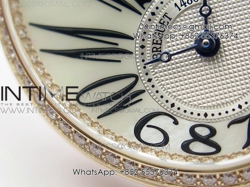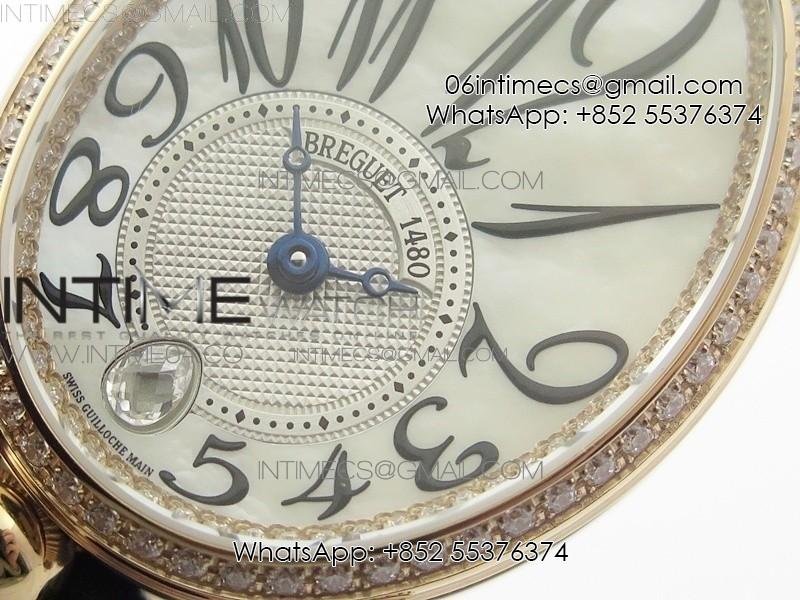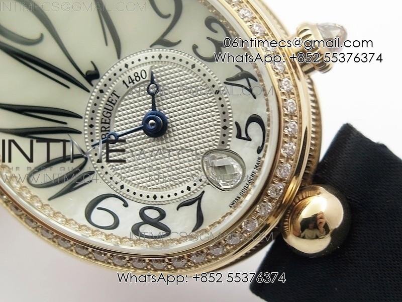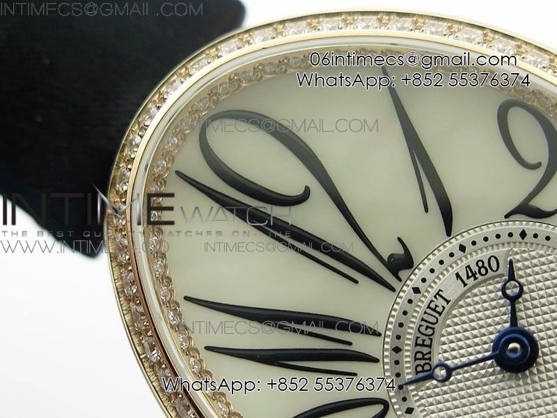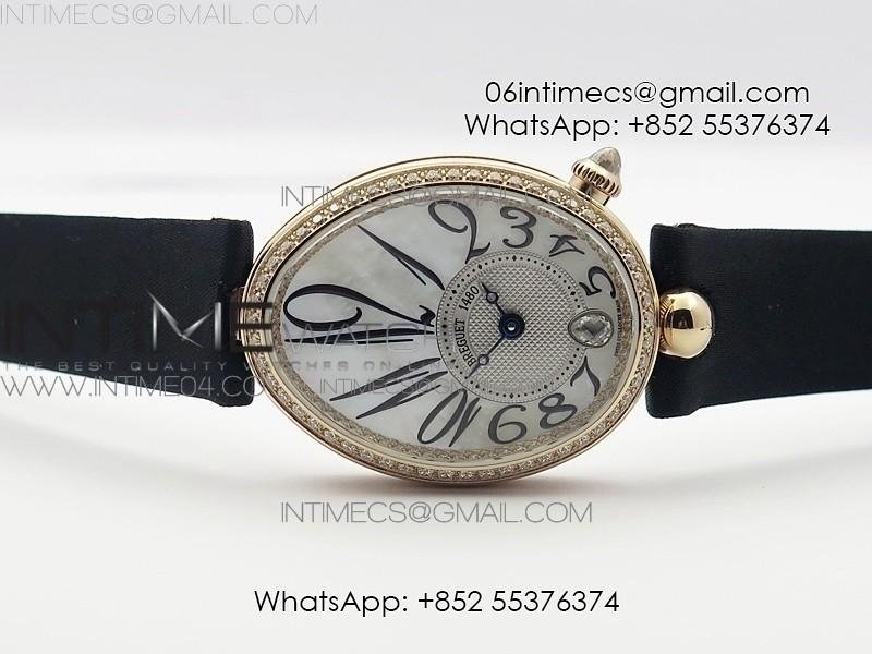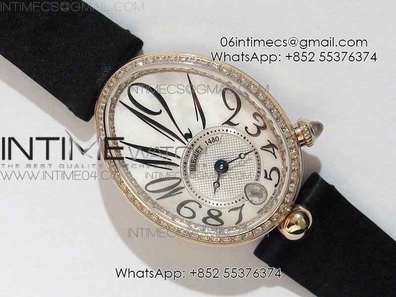 Reine de Naples 8918BB RG ZF 1:1 Best Edition White MOP Dial Diamonds Bezel on Black Fabric Strap A537