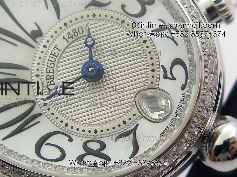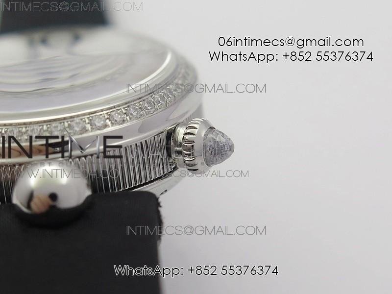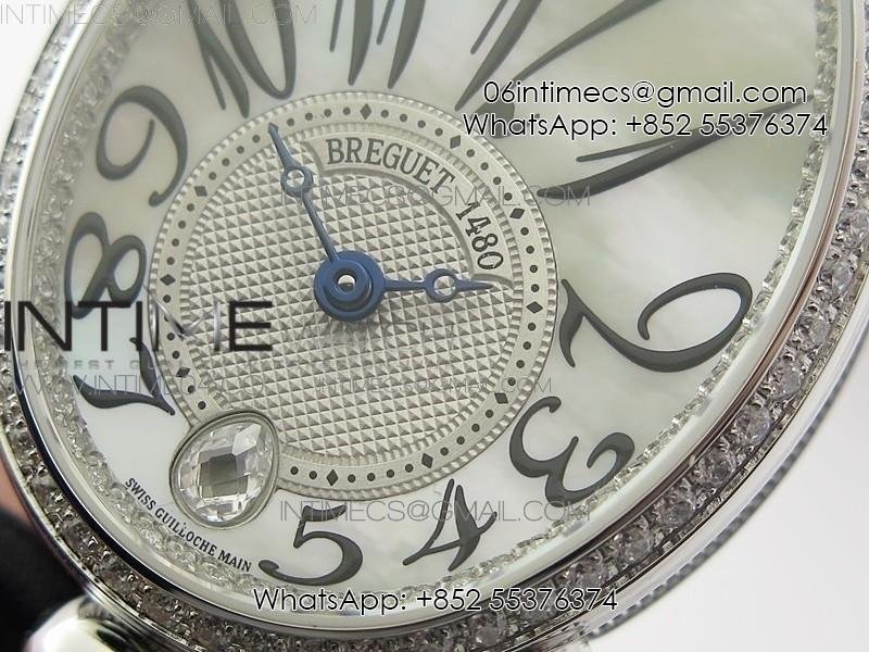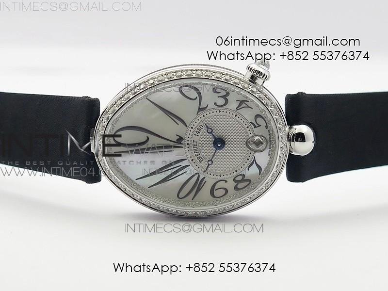 Reine de Naples 8918BB SS ZF 1:1 Best Edition White MOP Dial Diamonds Bezel on Black Fabric Strap A537