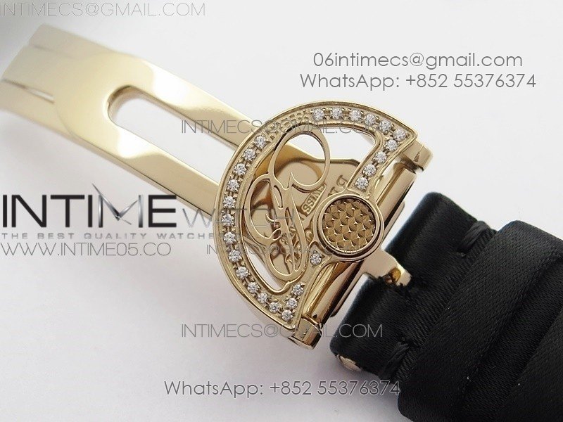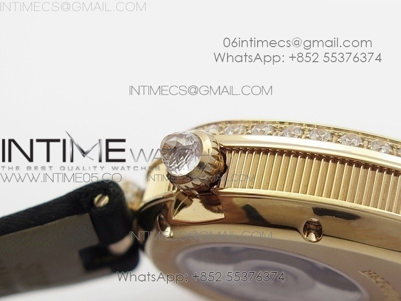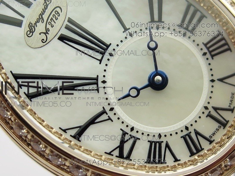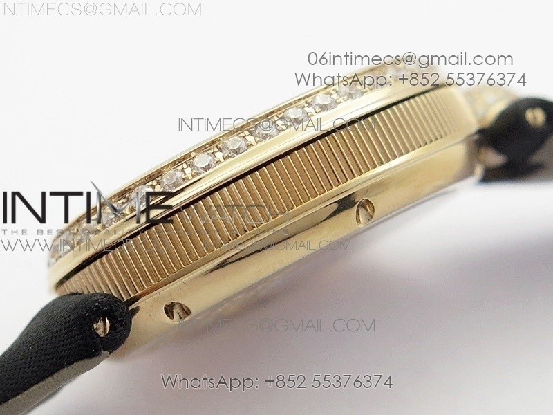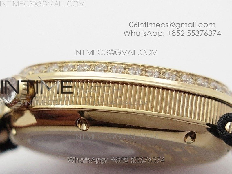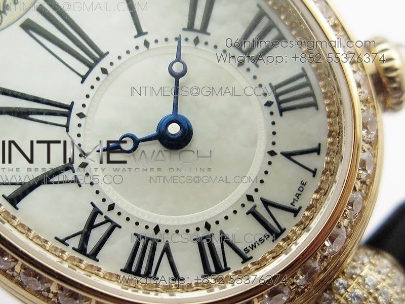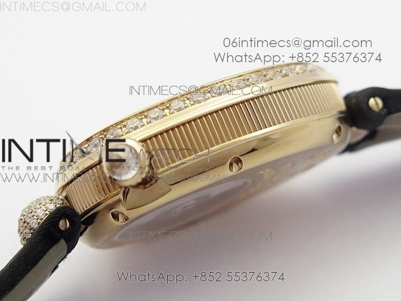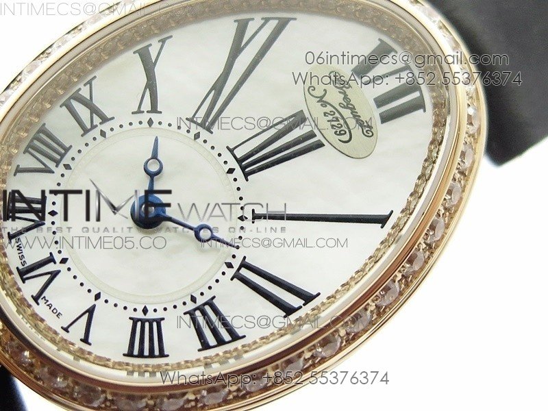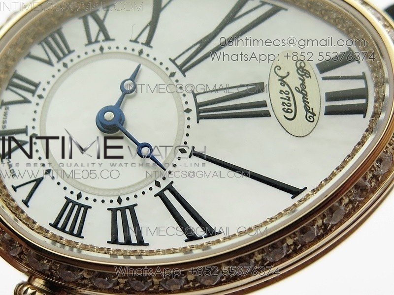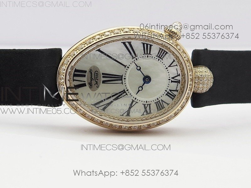 Reine de Naples 8928BB 33mm RG ZF 1:1 Best Edition White MOP Dial Roman Markers Diamonds Bezel on Black Fabric Strap A537