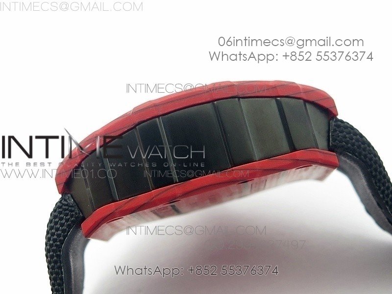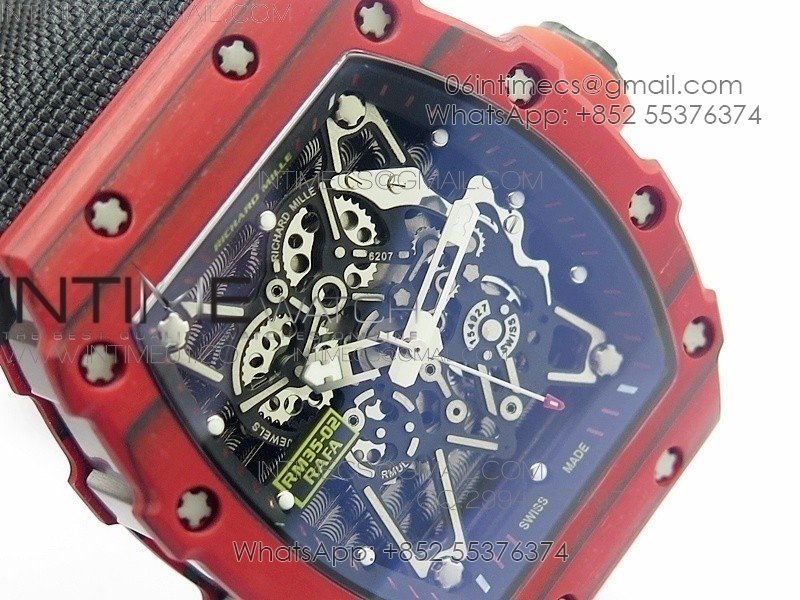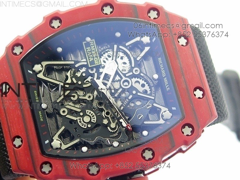 RM 035-2 Red Forged Carbon Black Inner Bezel Skeleton Dial on Black Nylon Strap MIYOTA9015