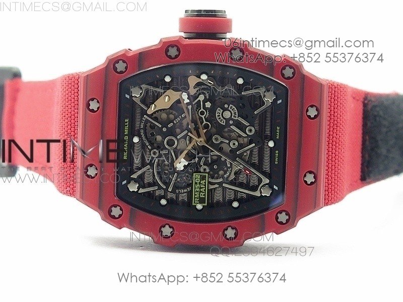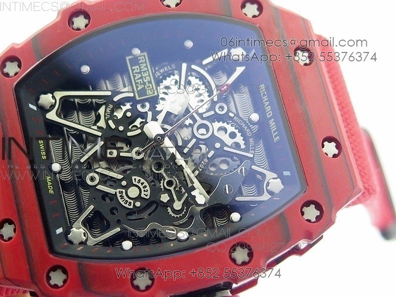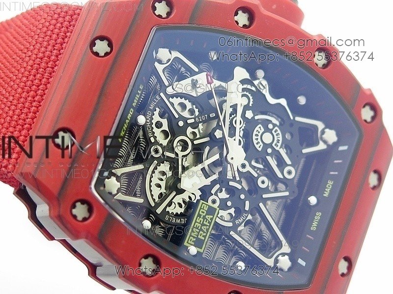 RM 035-2 Red Forged Carbon Black Inner Bezel Skeleton Dial on Red Nylon Strap MIYOTA9015