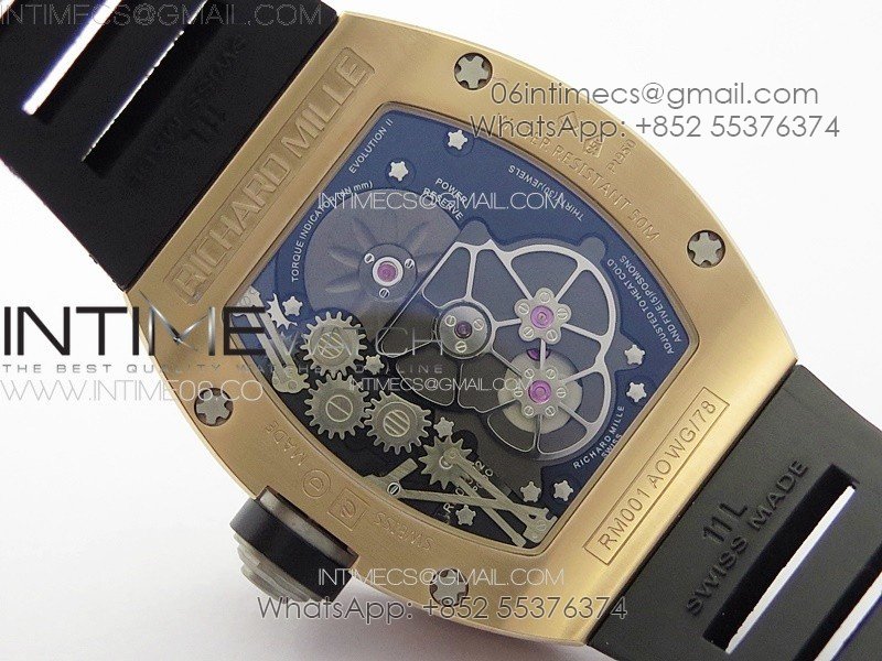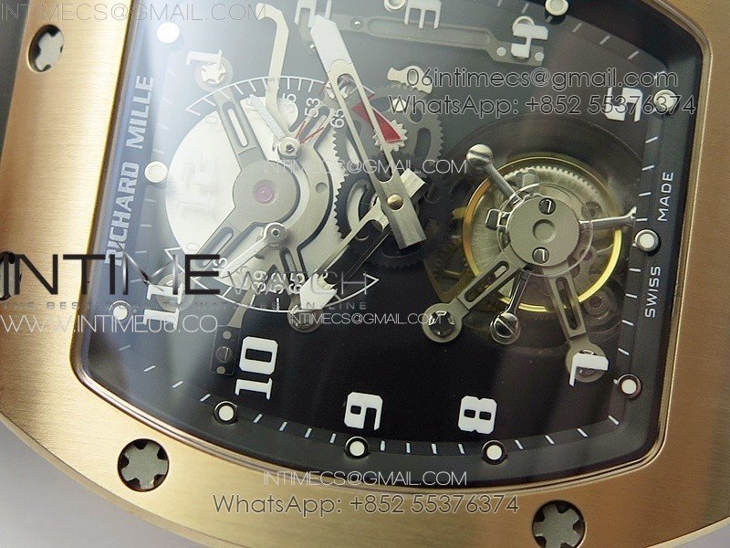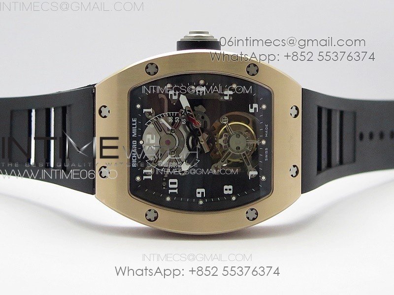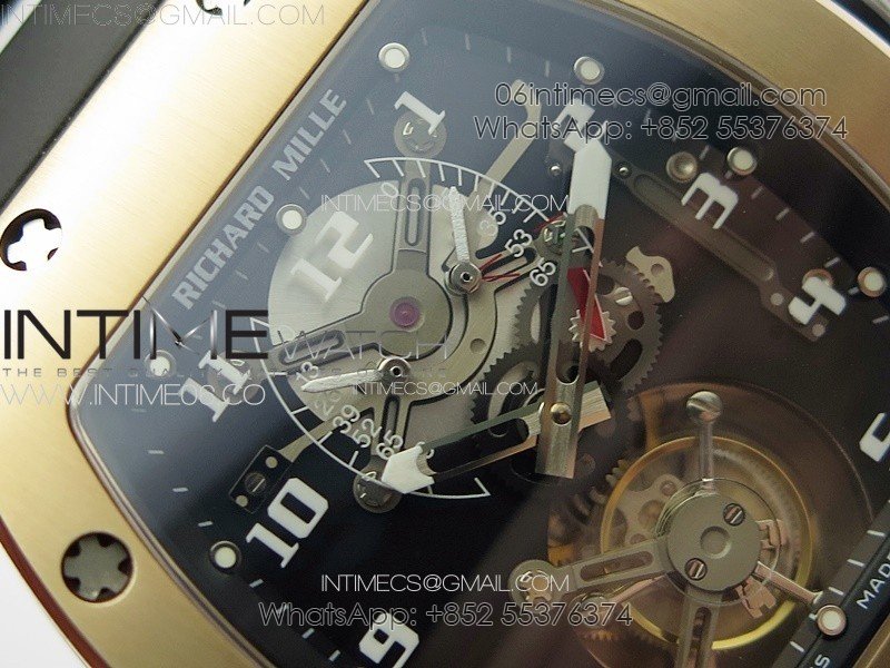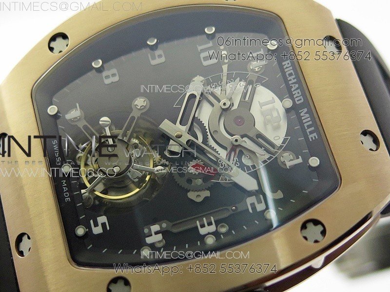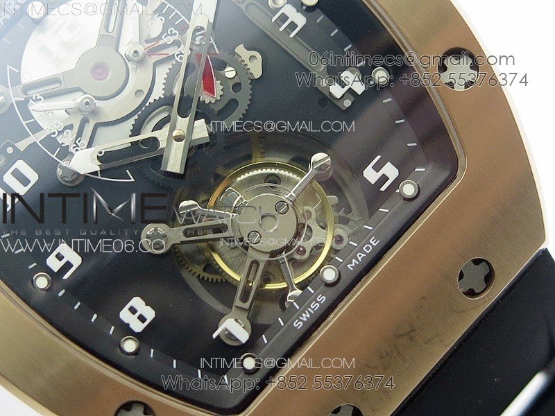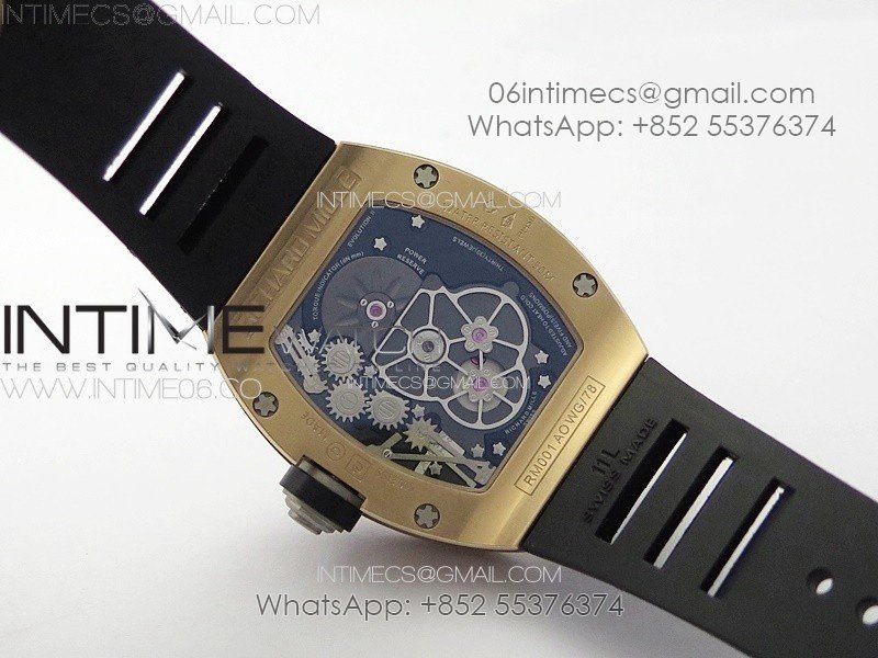 RM001 Real PR RG YSF Skeleton Dial on black Rubber Strap Asian Tourbillon